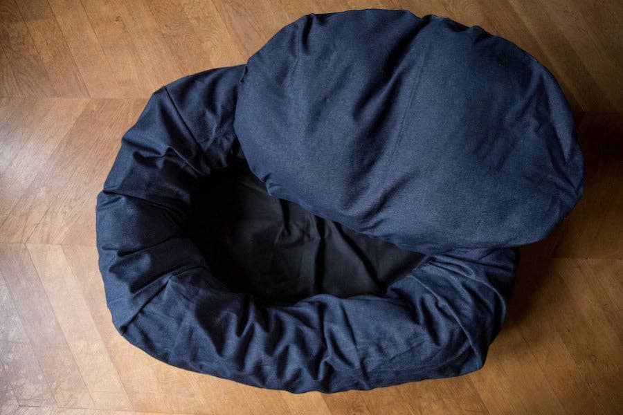 We are Jerry and Alex, and Stick and Fog. Over 10 years ago, we started by making beds for our dogs. We got the sewing machine out and started to make dog bed prototypes, until they were a snoring success. Red and Percy, our dogs at the time, were instrumental in getting us to the best dog bed design. We started off with basic pillows, but the dogs kept slipping off, pretty soon we realised a firm chunky bolster to lean up against was the answer to a comfy dog bed. Together we cracked it : Hindquarters dog beds are comfy dog beds that take rough and tumble and last. Dog beds you'll both enjoy. Today we make a range of dog beds in different sizes with a variety of removable washable covers made from nice natural fabrics. Then we moved onto collars and leads, and quickly found out it wasn't just us who wanted high quality dog stuff. Now we make our collection of dog products in small batches, keeping things as local and sustainable as we can; dog collars, harnesses and leads that are comfy to use and wear; comfy dog beds; and dog bowls that look good in the kitchen corner. This way we can also make martingale collars, long leads, front led harnesses, and other bespoke things, if requested. We are based in south London where everything is made with style and substance. Everything we make is tested and approved by our dogs, originally Percy and Red, then Twig, Timber and Tank, now Stick and Fog.