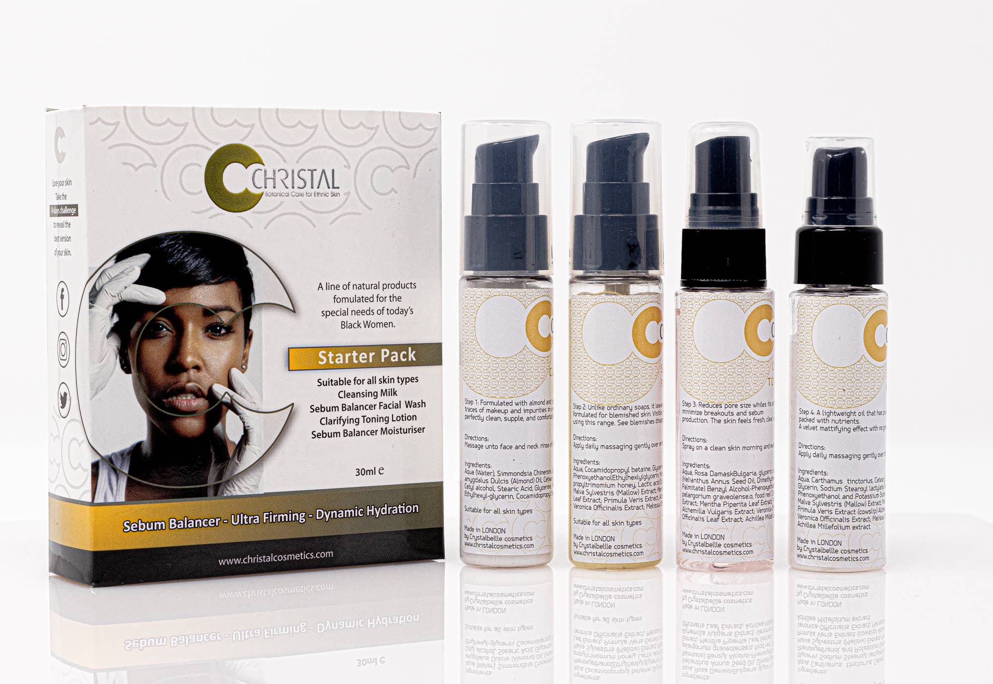 Christal Cosmetics offers an exceptional line of botanical products for the special needs of black and ethnic skin. Our mission is to enhance natural beauty with nature’s finest resources. A 2018 Black Beauty & Fashion Awards recipient recognized as a premier player in skin care product manufacturer for black and ethnic skin care and beauty. Christal Cosmetics is committed to the principles and application of Quality Assurance, an essential element of our purpose and mission. Christal Cosmetics—powered by plant, blessed by nature.