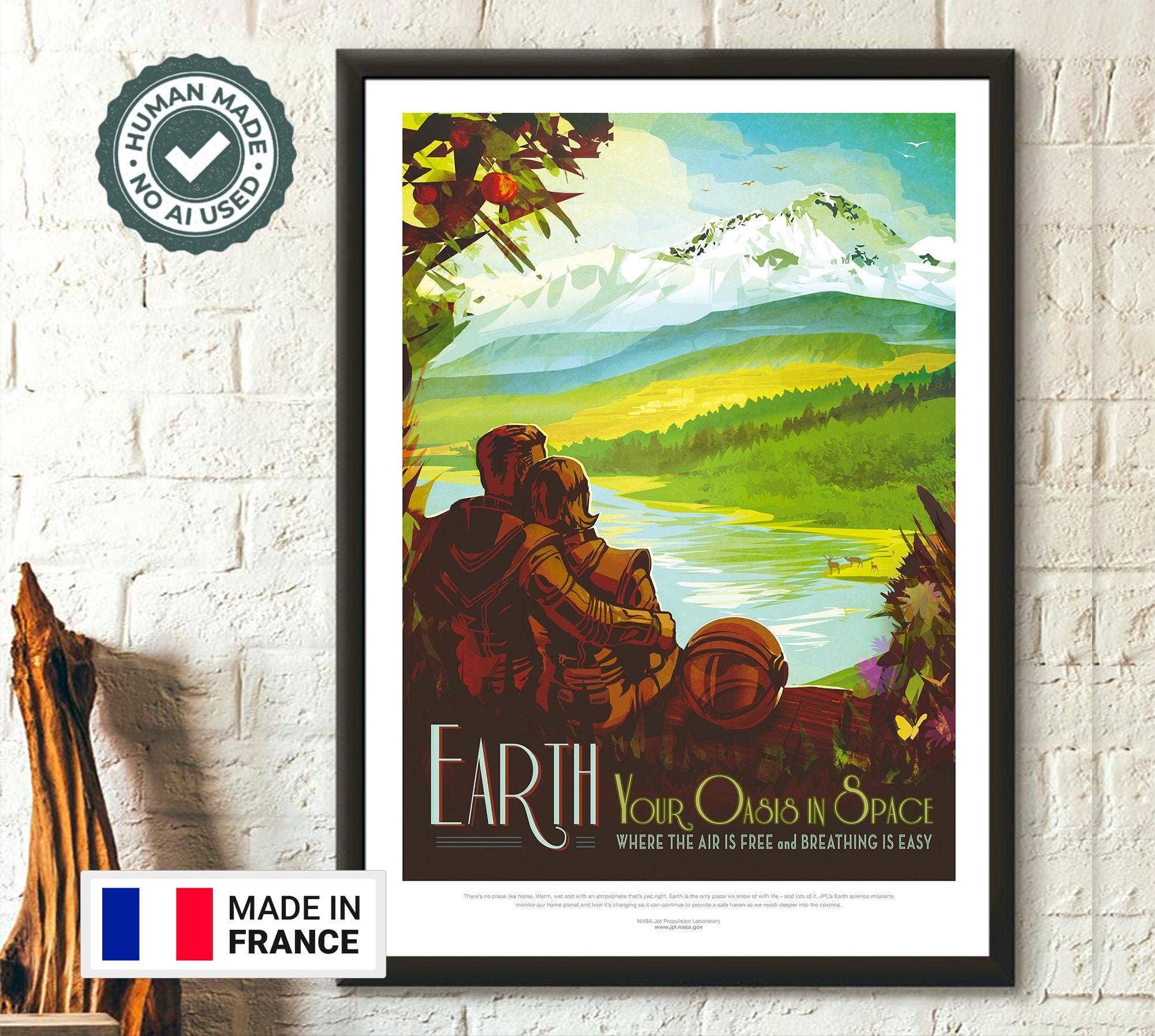 We started our journey in Paris, but we've since relocated to a beautiful village in the South of France, nestled between the Mediterranean Sea, Pyrenees mountains, and the Spanish border. We're Alexandre and Sintija, a dedicated couple crafting art reproductions in our family-run workshop. Since 2023, we've expanded our offerings to include stickers and wooden wall decorations, all meticulously crafted in our workshop. 🖼️ Authentic Restoration: Vintage posters, maps, Japanese art, modern art — each piece isn't just a print, but is meticulously digitally restored. We also design some modern prints inspired by Boho and vintage styles. 📜 Quality Matters: Our German-made 170gsm matte paper ensures vibrant colors and a glare-free finish. We prioritize both thickness and durability.