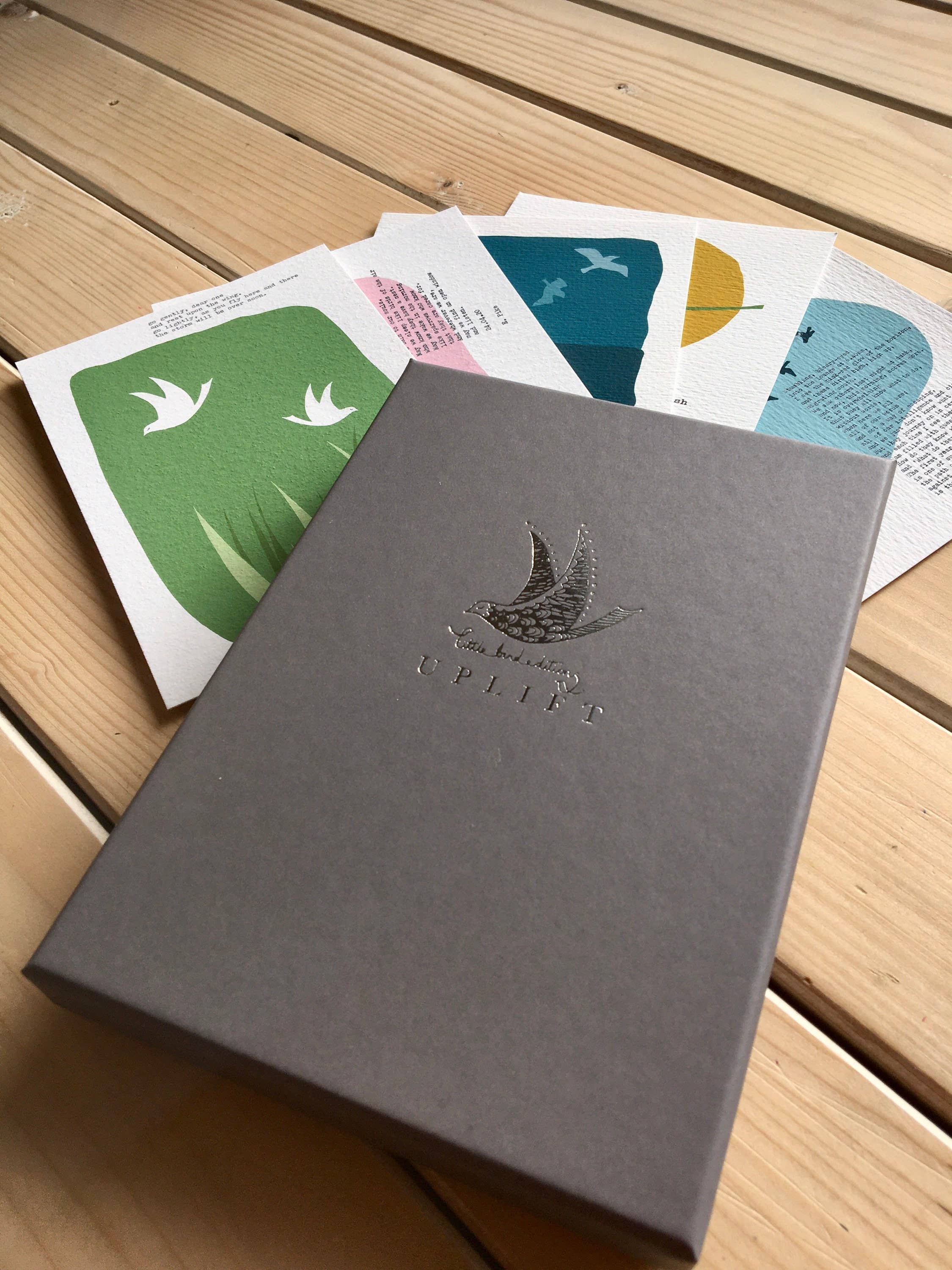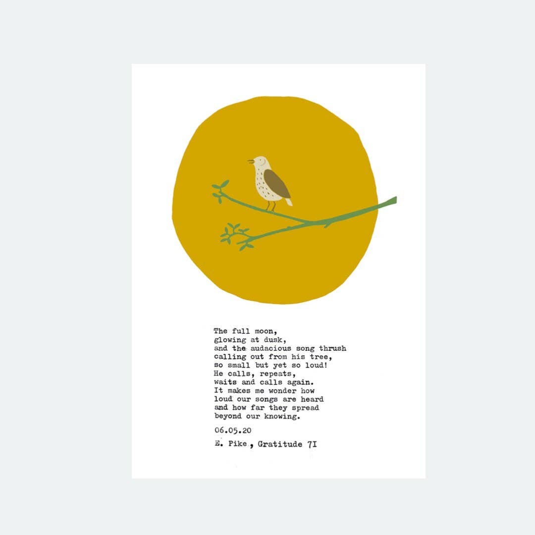 Little Bird Editions is run by Elisabeth Pike, a freelance writer, and maker. She is most often found dreaming up new novel plots, walking the Shropshire Hills, or sitting in the sun with a cuppa. She loves designing uplifting cards and prints to bring a little hope and joy in even the gloomiest of times.