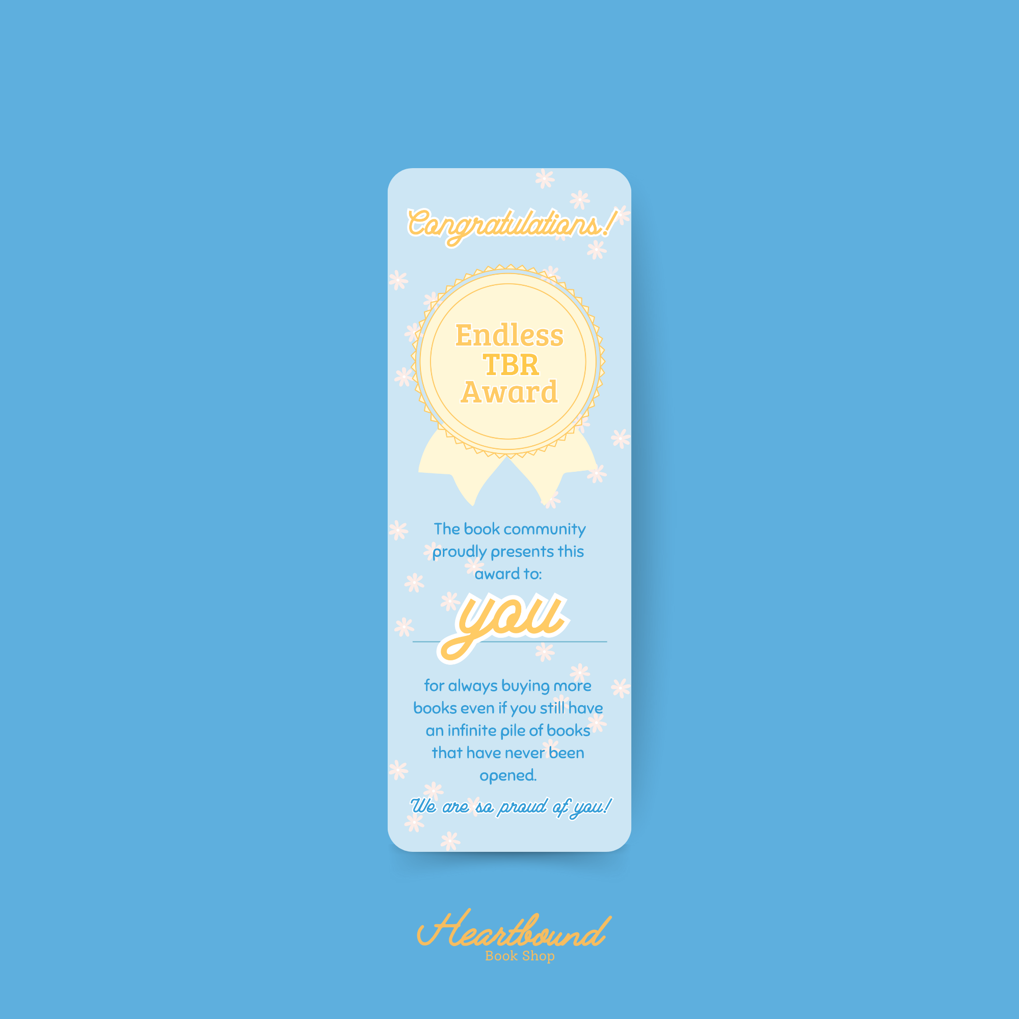 Heartbound Book Shop began as a dream nurtured by a family of women united by their love of books and the magical worlds they contain. What started as cozy evenings spent sharing stories and laughter transformed into a passionate desire to connect with a wider community of bookish lovers. Today, Heartbound curates a delightful selection of books tailored to spark joy and imagination, with a special emphasis on creating fun and hilariously relatable bookmarks that add a dash of humor to every reading experience. With each page turned and every bookmark tucked, we celebrate the joy of reading and the bonds it forms, inviting everyone to join our story.