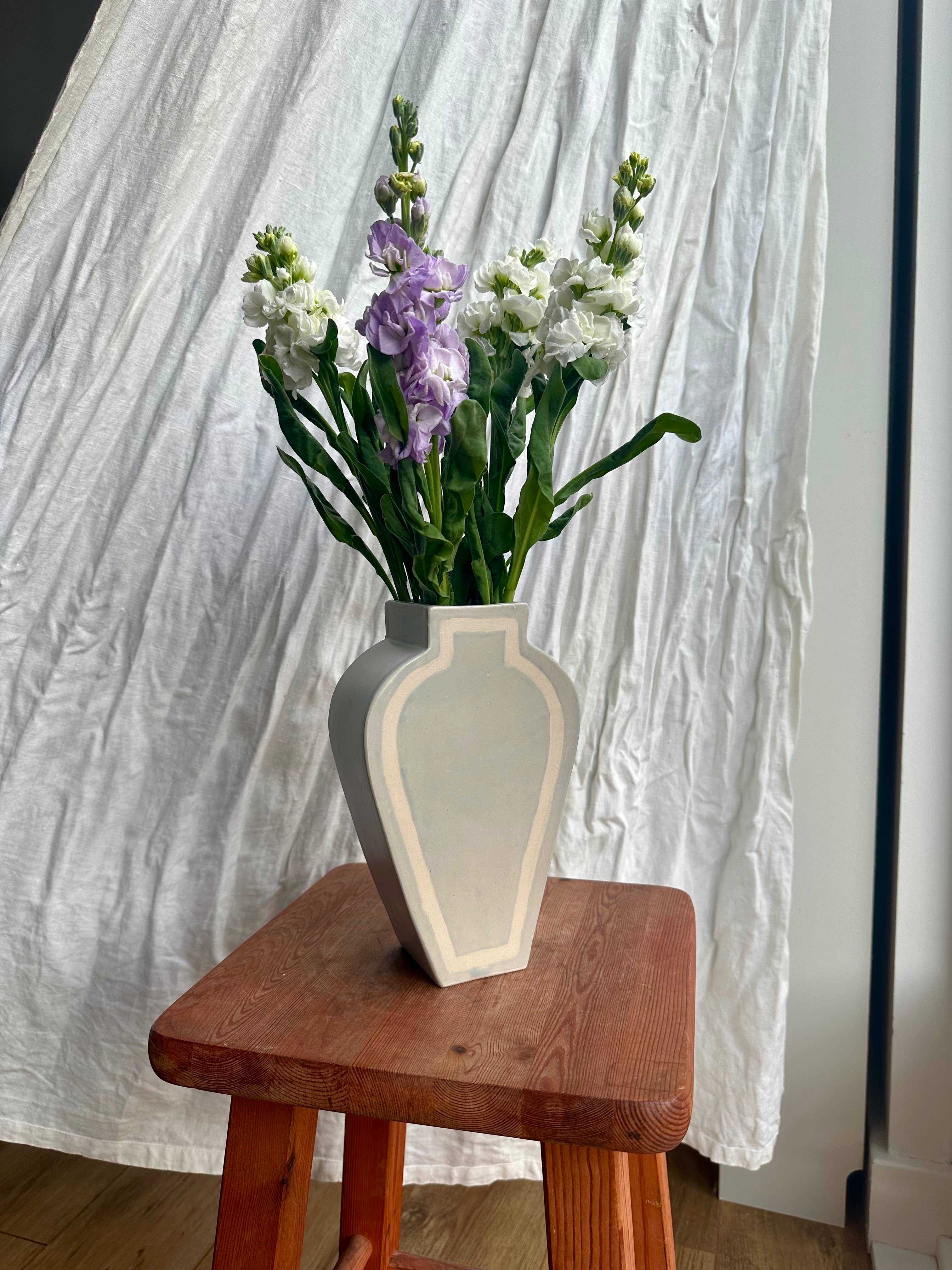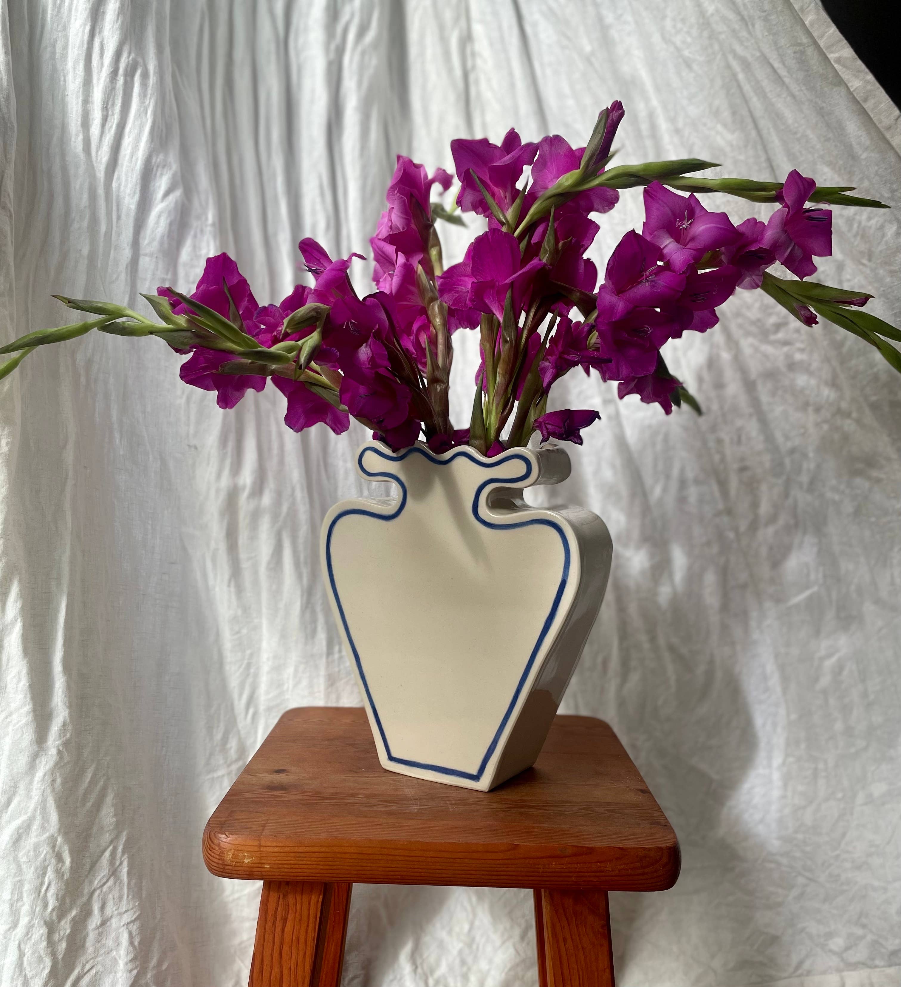 Studio ERS is a small one-woman ceramics business in South London run by me, Emily Rose Sinclair. My work is a mix of handbuilt and wheelthrown, and I create products that relate to two of my great loves: food and flowers. This means you'll find lots of vases, plates, platters and snack dishes. My process normally involves an initial doodle on a scrap of paper, before coming to life in my studio. Much of my work has a hand-painted detail to it. It takes time and care and it makes each piece completely unique. My items are for pre-order only. This helps me to work in a sustainable way.