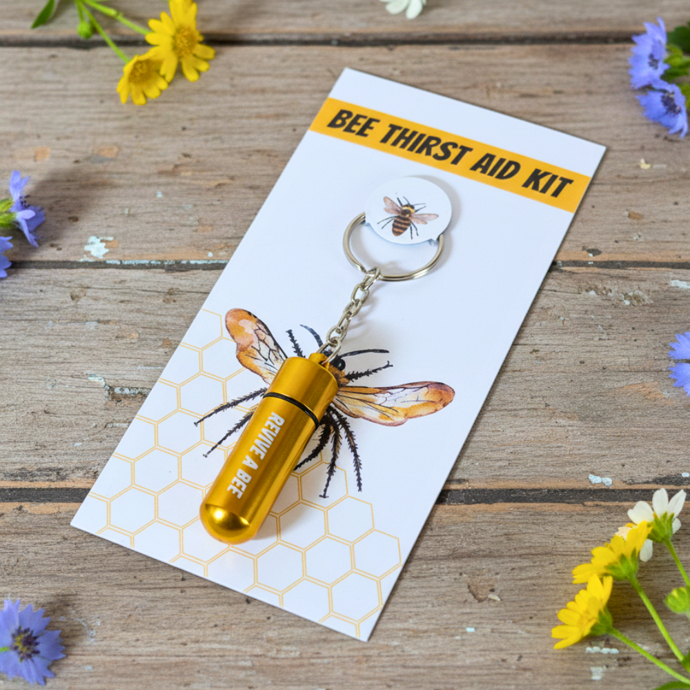 Revive a Bee is an eco conscious brand that actively helps the planet by giving you the tools you need to help save bees and plant trees. You can help Revive a Bee by getting your own Bee Revival Kit. Always ready to Help Save a Tired Bee, our Bee Thirst Aid Kit fits neatly on your keys. All of our kits are sold with seed paper, which contains a wildflower mix of seeds to help save bees and contribute towards Rewilding Britain.