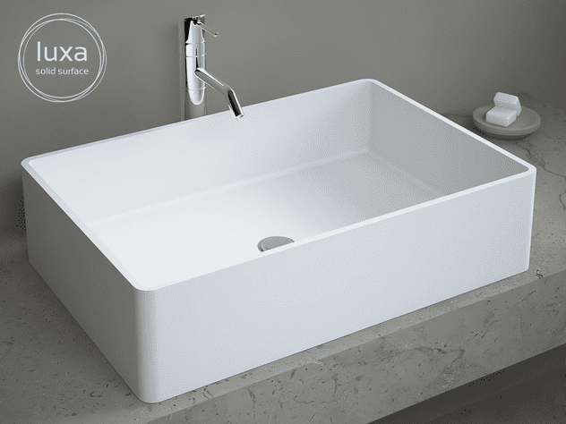 All our products are made from Solid Surface, also known as mineral composite. Solid Surface, the contemporary reference material, is made from a blend of real stone and resin, and undergoes a careful manufacturing process to achieve a smooth matte white finish with unparalleled resistance to stains and wear. It is a durable material with a long lifespan, resistant to stains, easily repairable, with invisible joints after sanding, and easy to maintain because it is homogeneous and non-porous. You can maintain it with a double-sided sponge (with a soft side for daily cleaning and a very fine-grained side for stubborn stains or scratches that can be removed by sanding).