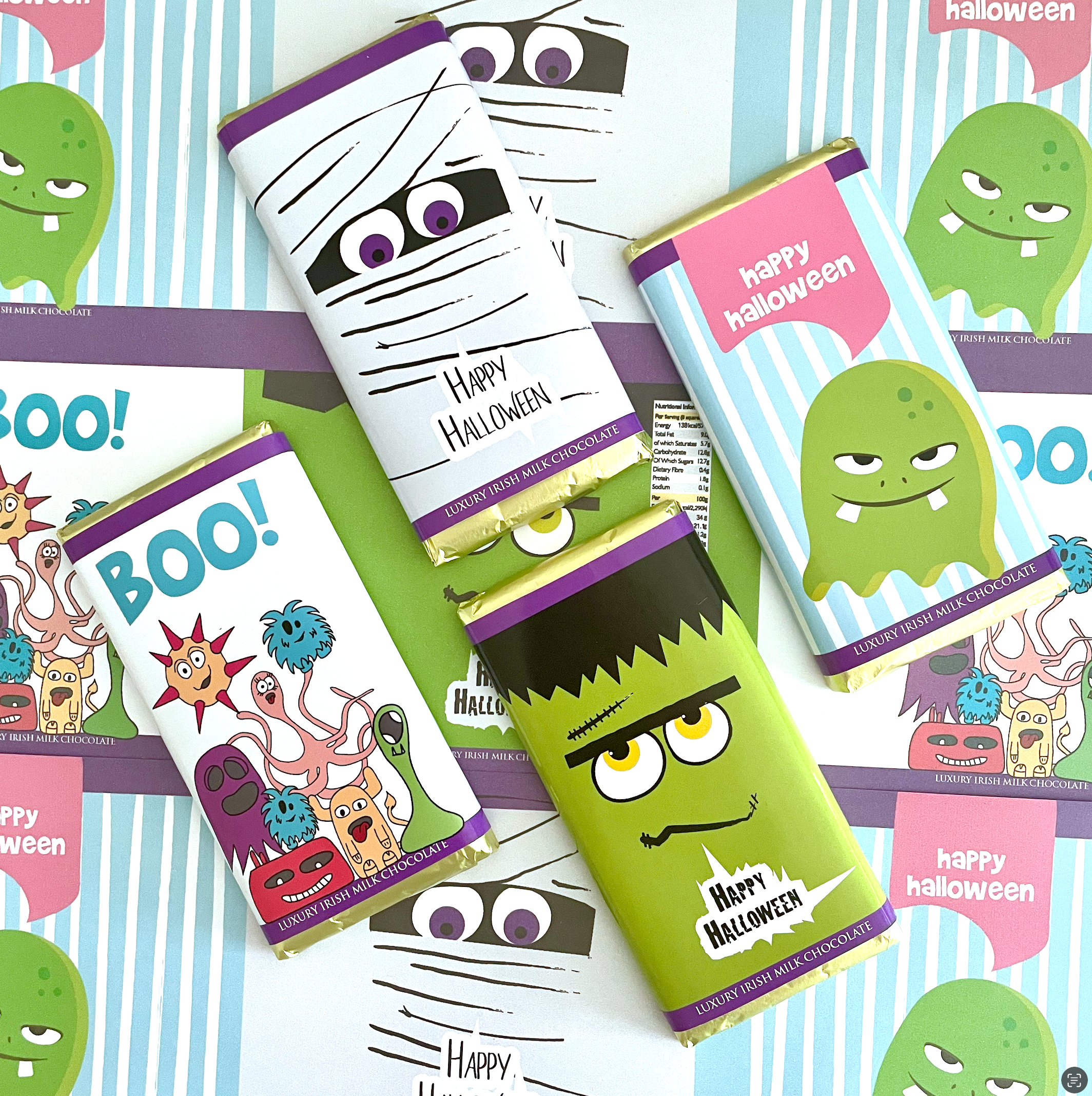 Claire launched www.SweetLiving.ie in 2015 after returning to Kilkenny from San Francisco where she worked as a graphic designer in a design agency for 10 years.The idea of creating custom chocolate bars came to her as she was creating and styling one-off candy buffets for occasions and events. Using her graphic design skills, she created custom graphics and chocolate bars to suit the styling of each event. The chocolate bars quickly became popular as a stand-alone product and Claire’s funky and quirky designs have attracted celebrities in Ireland, the UK, and the United States. When Little House on the Prairie actor, Alison Arngrim asked her Twitter followers to give her a reason to follow them back, Claire designed a chocolate bar using the many facial expressions and sayings of Nellie Oleson – the character Alison played in the television show. The design impressed Arngrim and her followers and while the Nellie bar might have been a one-off, Claire has been encouraged to grow her business and there’s no sign of slowing down. The demand for her design led chocolate bars is still growing. Her Chocolate Bars are stocked at various locations around Ireland, Europe, across the USA and now Australia and with over 180 designs to choose from you’ll never run out of choice!.