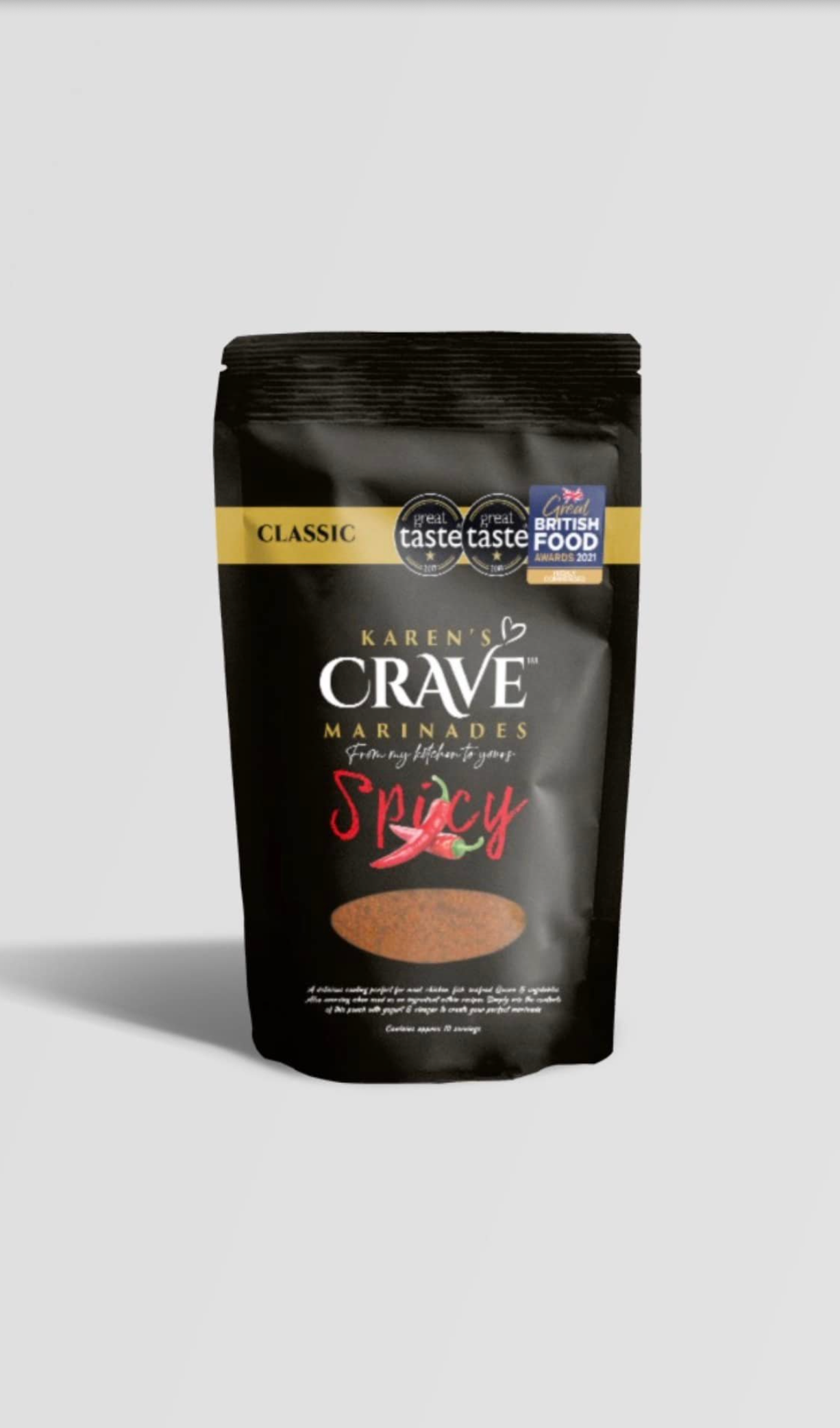 Crave Marinades literally are here by accident! I entered a competition on a television show which was called Britain's Best Dish & was crowned Regional Finalist for the North West of England with my signature dish, Karen's Spicy Chicken using my spicy marinade! I gave up my career at Lancashire Police Headquarters, opened a sandwich shop & seven years later following the success of the marinades I decided to look into making them retail ready & here we are! Plant based & award winning, they are enjoyed around the world in homes, cafe bars, butchers & restaurants in fact anywhere that sells food! Perfect as a coating for vegetables, fish, shellfish, chicken, meat, pork & quorn & amazing when used as an ingredient within recipes. Take a look at my website www.cravemarinades.com for some inspiration ... there will be something there to tickle your tastebuds or maybe you can create your own special dish! Can be used as a dry rub but use sparingly as this spice blend is super concentrated!