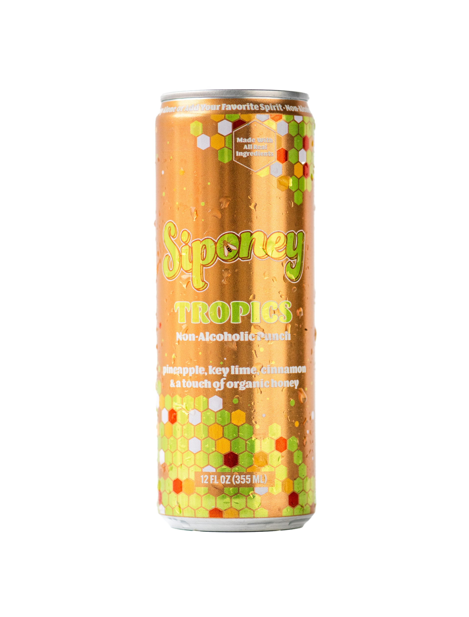 Siponey Spritz Co.® is a family-founded, Latina-owned company by NYC born and raised entrepreneurs, Amanda Victoria, a second-generation Boricua, and her husband, Joseph Mintz. We also have LP O’Brien as a shareholder who is an Afro-Latina from the Bronx and the winner of Netflix’s Drink Masters. We are B Corp certified which means we put people and the planet in the forefront of our business, specifically 2% of our revenue yearly goes to environmentalists, as well as non-profit organizations that are Latino / people of color founded like Corporate Pero Latinos. Siponey Spritz Co. is the first B Corp certified canned cocktail using all real ingredients, don’t use “natural flavors”, inspired by the classics with a better-for-you approach. Our line-up is made to be both delicious on their own or mixed with your favorite spirit; our innovation of offering an NA cocktail / mixer hybrid is to give consumers more choice to explore premium NA beverages. They are called Siponey Pollinator, Botanics, Tropics, and Roots. Using great, real ingredients in our recipes which are inspired by classic cocktails, like organic wildflower honey from New York State, across our entire line is what makes Siponey Spritz Co. especially unique in the world of canned cocktails. The entire non-alcoholic line each contain less then 50 calories, are gluten free, and have no artificial sweeteners, simply sweetened with a touch of wildflower honey with 12g of sugar or less.