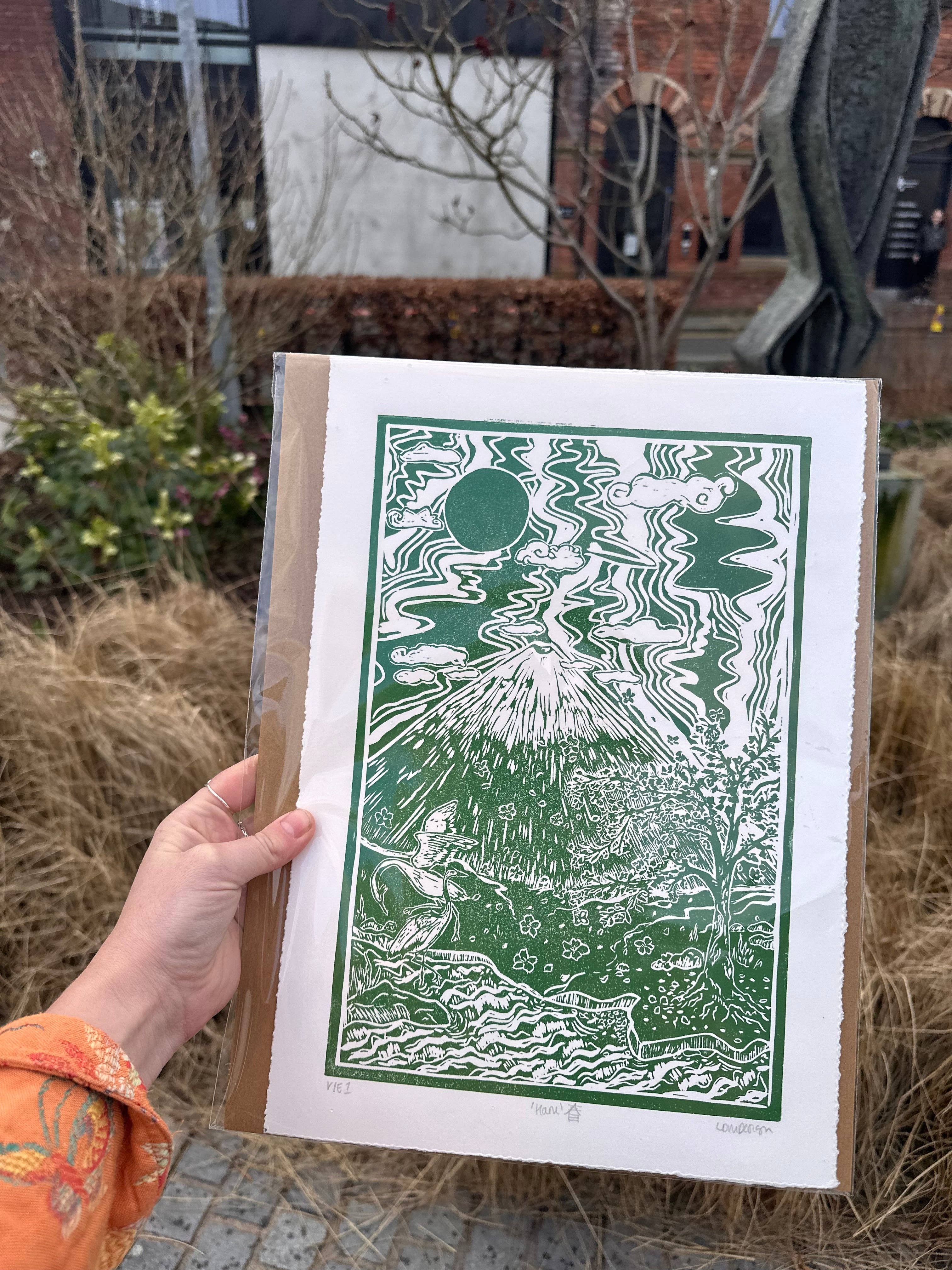LDMDesign is based in Huddersfield West Yorkshire. Love for adventure and planet has led to a collection of work inspired by sustainability and the great outdoors, from small batch runs of linocut prints hand printed in house are then developed into thoughtfully sourced function focused products and wears.