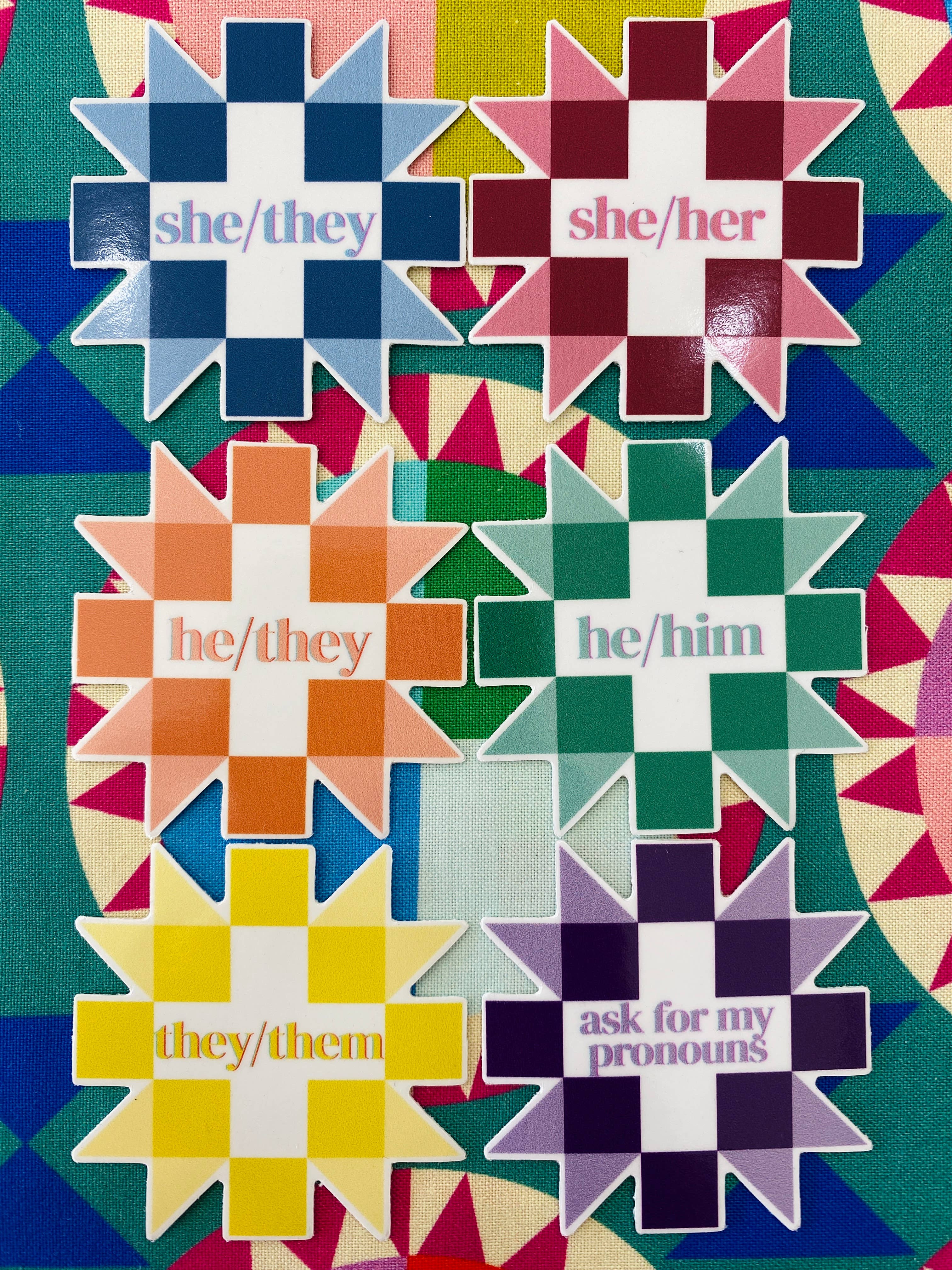 Zipped and Printed highlights the wax print cotton fabrics associated with African style by bringing them into conversation with modern quilting styles and sewing techniques. On Faire, you'll find digitally drawn stickers that make the brand identity portable!