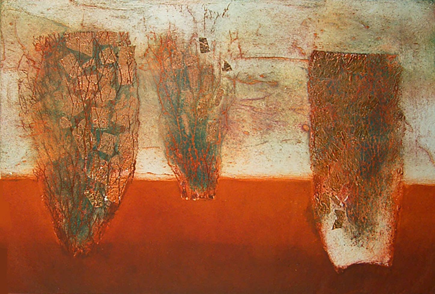 About Brenda's work Her work explores the texture, pattern and light of the landscape, and ranges from finely drawn figurative works to bold, heavily embossed abstract images. Far the past 10 years she has been most interested in drawing abstract imagery from the landscape, rugged mountain erosion, structure of the land and the the dynamics of plant growth. She loves the strong light and shadow of Southern Europe, and remote New Zealand, where she was brought up, as well as the gentler greyness of the light in London and Sussex. Many of her early more figurative works are still available, and are well represented in the portfolio collections here. She is based in her studio near Rye in East Sussex.