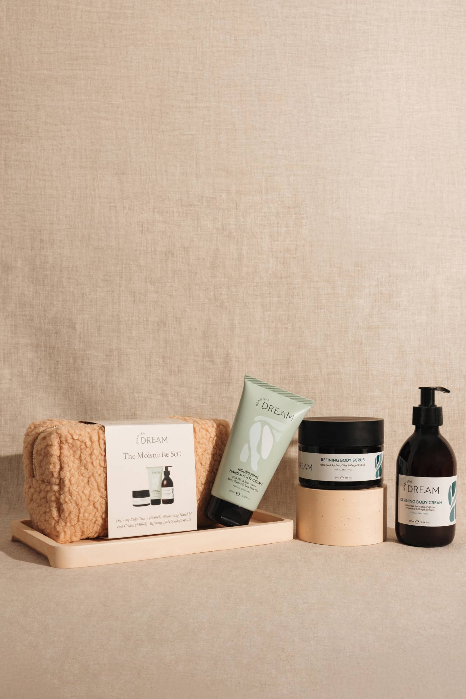 Knowing the therapeutic powers of floatation in this ancient curative space…the lowest place on earth, with an extraordinary ability to soothe, Dead Sea Dream is a range compelled by our need to slow down and reconnect with ourselves. Dead Sea Dream is a streamlined, elegant approach to the spa ritual, beautiful efficacious products with no compromise on performance, dedicated to the pursuit of flexibility in self-care. Capturing the purity and heritage of the Dead Sea region. Step away from the storm of your day, take a moment. Create a secure space in which to nourish the mind, body and soul.