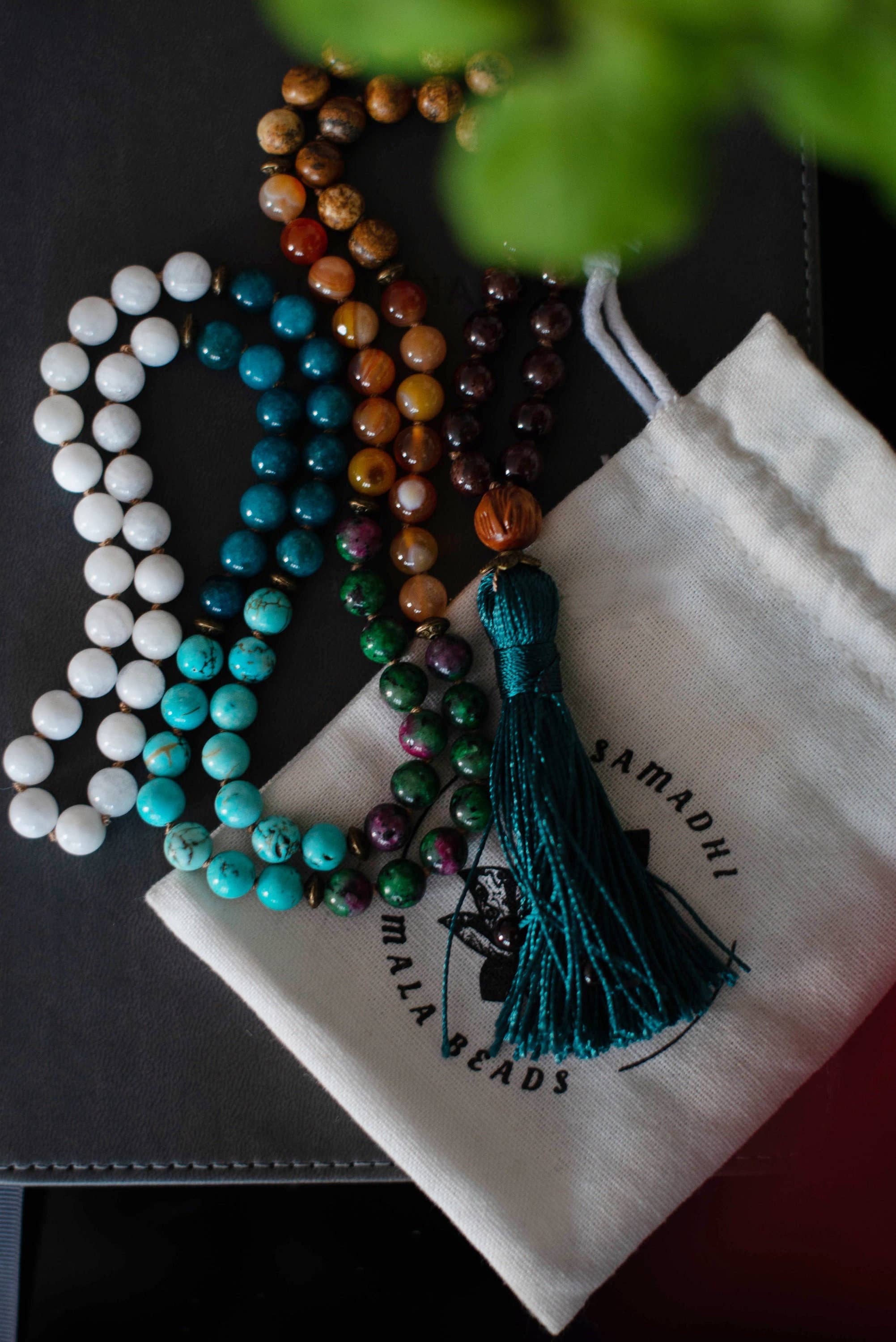 Samadhi Malas was born with the desire to bring more peace and healing to the world. Made from natural gemstone beads and charged with Reiki healing energy, Malas are great tools for deepening meditation practices, lowering anxiety, decreasing stress, and creating a deep connection with the self and spirit. Accessing the depths of the subconscious mind, through breathwork, meditation, intention setting, and rewiring the mind to manifest your desired life.