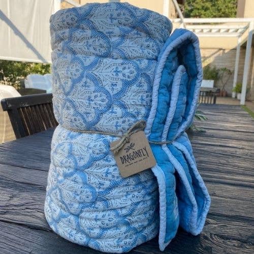 Dragonfly Quilts & Co. was born from the passion for color and for the ancient manual printing techniques used in the countries of the Asian continent such as batik and hand-block printing. Natural fibers such as the finest cotton, in its textures such as muslin and voile, and azo-free colors, characterize the production of the soft quilts designed by Dragonfly; almost all double- face, they change the look of the bedroom by imposing themselves as a real design complement that gives a glam and sophisticated touch to the bedroom. Their soft padding in pure cotton flakes makes them warm and cozy, suitable for reconciling sleep during mid-season, or to add warmth and color over the usual duvet, while the Matching cushion covers allow you to play with patterns and create fun combinations. The pyjamas collection for adults and children is the other Dragonfly Firenze collection, to always be fashionable even in bed! and to complete the style, why not be enchanted by the colorful patterns of the tablecloths and placemats of the table collection?