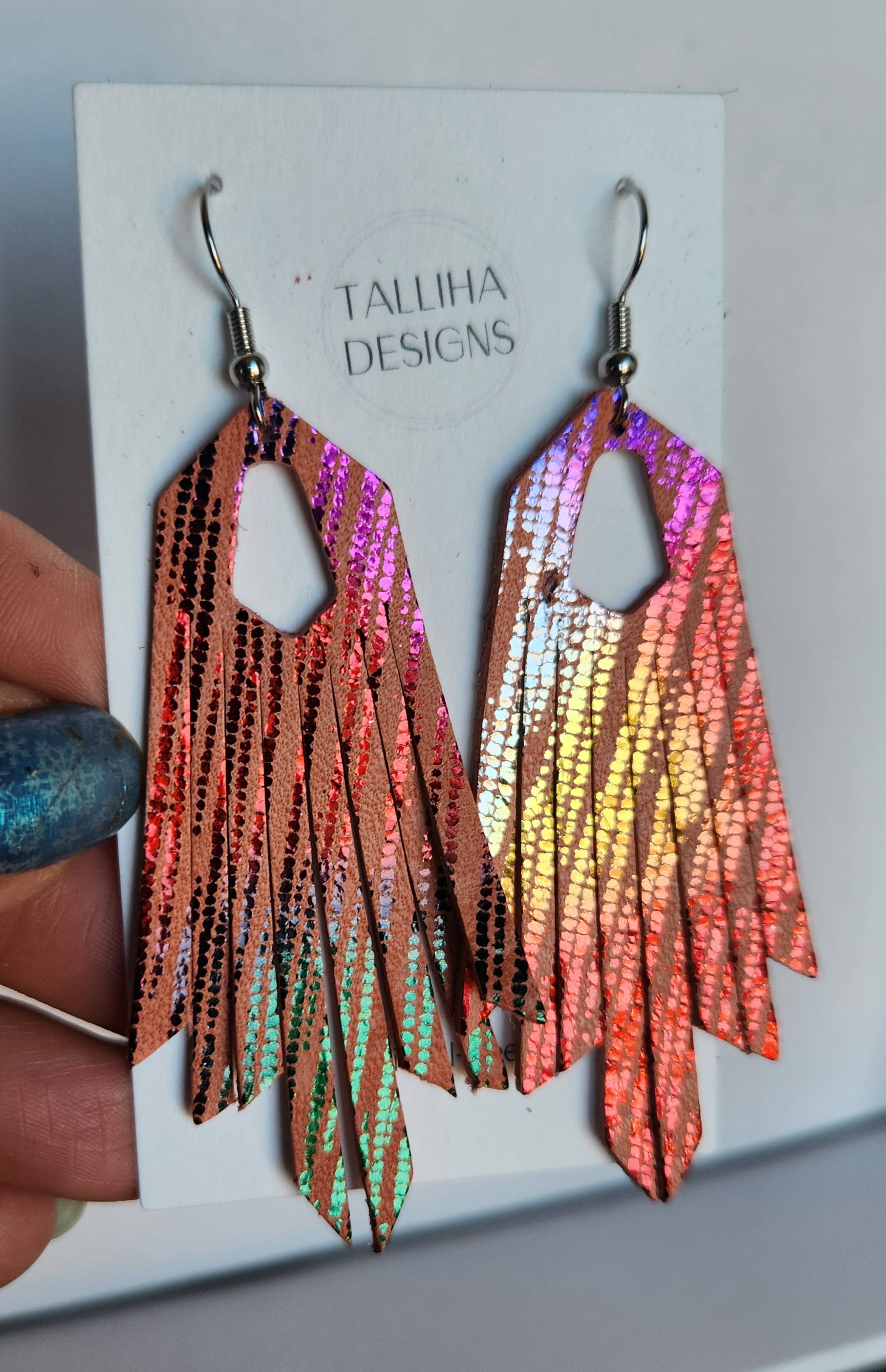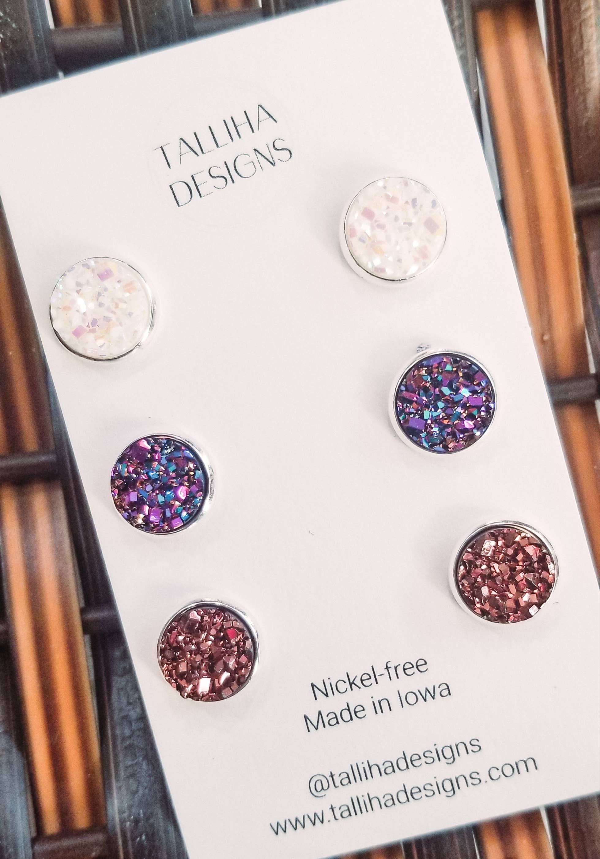 My name is Tami and I am the owner of Talliha Designs. I have always had a love of jewelry and started young by making beaded necklaces, bracelets and anklets to wear and sell to friends and with my parents when they set up at some local craft shows with my dad's woodworking business. I guess you can say I have a little bit of creativity in my blood! I have been making jewelry since 2018 and use a variety of different mediums, including genuine leather, precious metals, hand poured resin, faux druzy, wood and macrame. I love to incorporate various mediums in my pieces to make unique statement pieces. All pieces are made with hypoallergenic, lead and nickel-free hardware. I believe in life long learning and continue to evolve and change as I learn about new processes and methods. Thank you for being a part of this journey with me!