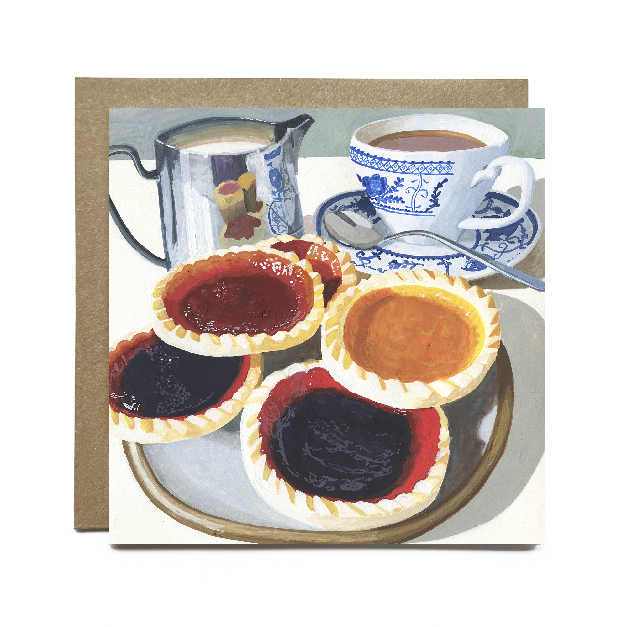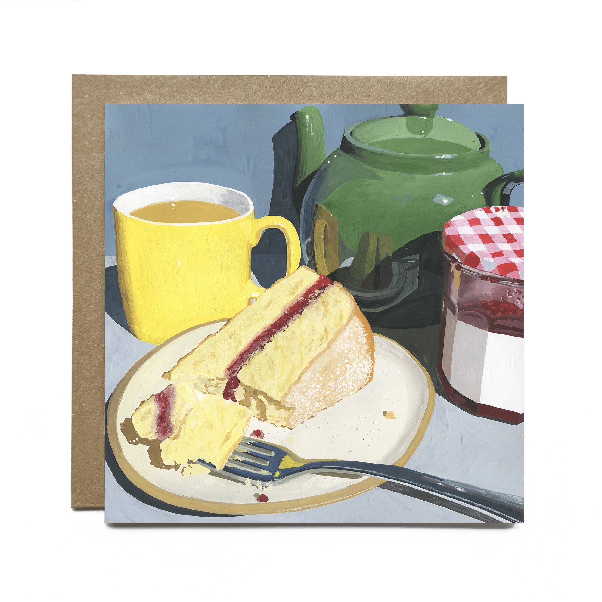 After completing a degree in graphic design as a mature student in 2019, Julia discovered a passion for gouache—a vibrant, opaque paint similar to watercolour but with richer, bolder hues. She uses this medium to create intricately detailed paintings, often inspired by still life scenes, particularly food. However, her subject matter spans a wide and playful range. Now a full-time artist, based in Norwich in the UK, Julia’s work is frequently praised for its remarkable attention to detail—whether it's a single cake crumb or the delicate glint of light on a ceramic vase. Many of her paintings are transformed into greeting cards, carefully selected based on their appeal to the card-buying audience. At their heart, Julia’s cards celebrate the beauty of everyday moments—joyful, vibrant, and lovingly rendered.