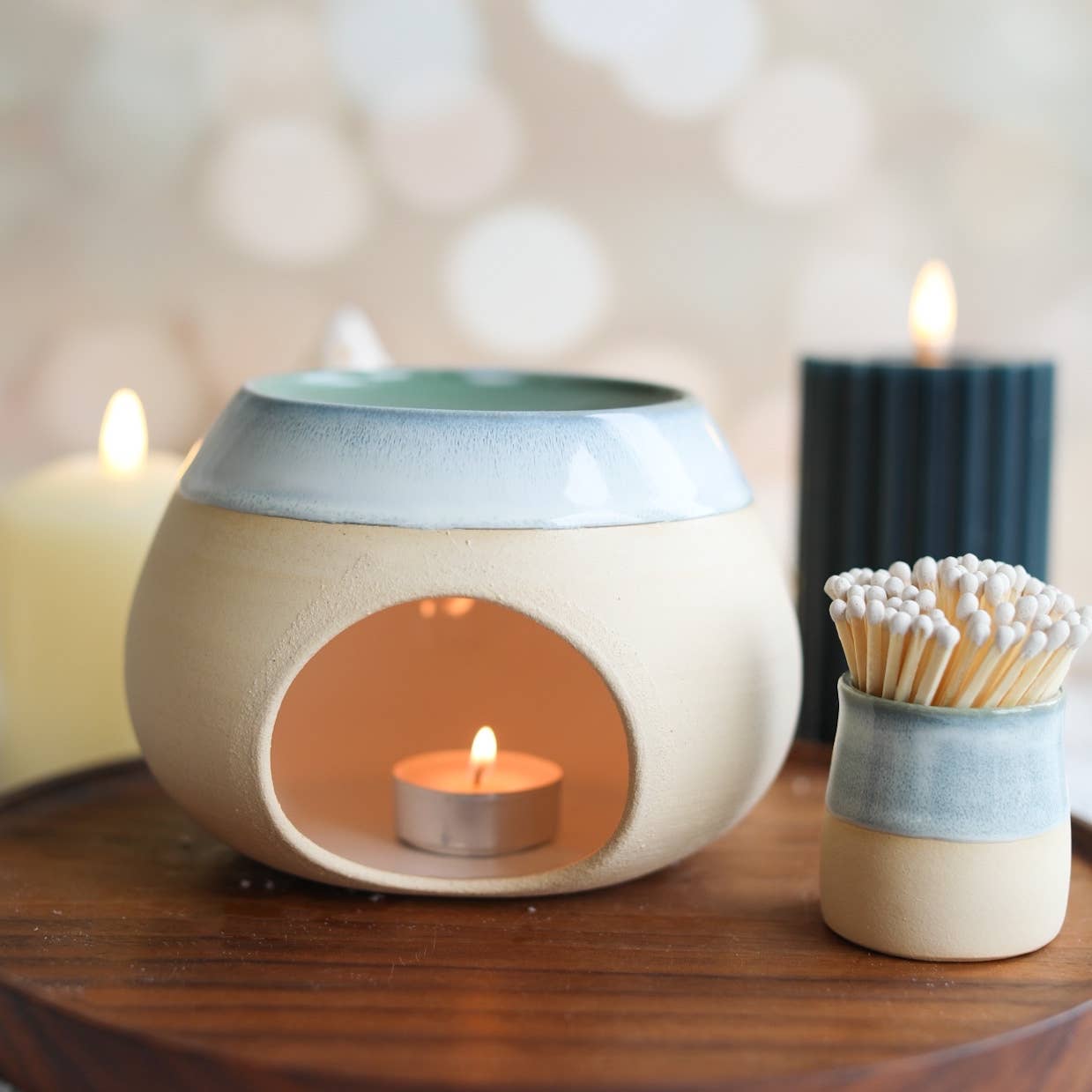 Glosters is an affordable handmade ceramics brand based in Porthmadog, in the heart of North Wales. The growing business is run by husband and wife team Tom and Myfanwy, supported by a growing team of creatives with an eye for quality. The catalogue of contemporary ceramics is designed not only to be functional, but a joy to use. We are inspired by our gorgeous natural surroundings, bringing the stormy seas, coastal blues, and heather purples from our backyards and onto our handmade ceramics. Our wholesale catalogue currently includes our iconic handmade ceramic mugs in two sizes: the large mug, and our unique Mugster® coffee mug, both available in our eight Glosters glazes. Alongside the handmade coffee mugs, you’ll also find our Milk Bottle Vases - a gorgeous piece full of nostalgia - as well as drinks tumblers, a versatile ceramic dish, our unique wax melt burner, and match pots. All of our ceramics are made by hand in our pottery workshop, where we use locally-sourced stoneware clay that has been chosen for its strength and durability. We want your customers to love their Glosters ceramics long into the future, bringing soft joy into the everyday. All of our wholesale orders are made to order, so please allow 2-4 weeks for fulfilment. We believe that Glosters is a destination for retailers and individuals building a collection of beautiful ceramics and searching for unique handmade gifts. We’re delighted to welcome you to our growing number of stockists worldwide.