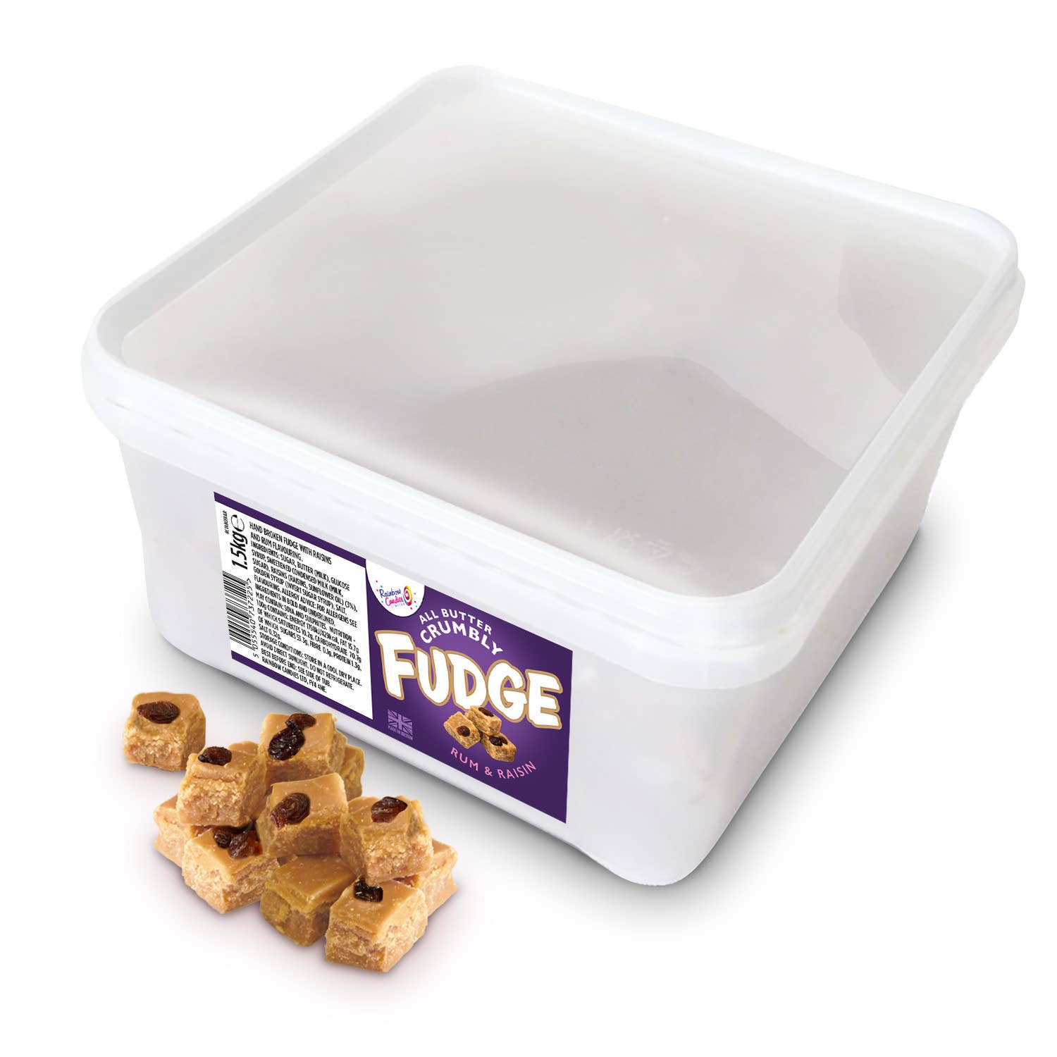 Our history starts with us making sugar candies: wheel lollipops, humbugs ,chopped rock candy and lettered rock. The team at Rainbow Candies have been making sugar confections in Lancashire since 1996. Using refined white sugar, bright colours and delicious flavourings we make our candy in a boiling the traditional way. The colouring, flavouring and when needed, the designs, lettering or stripes are hand created by our team of skilled sugar boilers. Fudges & Toffees In more recent years we started manufacturing a range of twist wrapped fudges and toffees and in 2023 the range expanded to include smooth fudge cubes, fudge bars and crumbly fudges. Boiled Sweets We make a limited range of boiled, twist wrapped sweets to order.