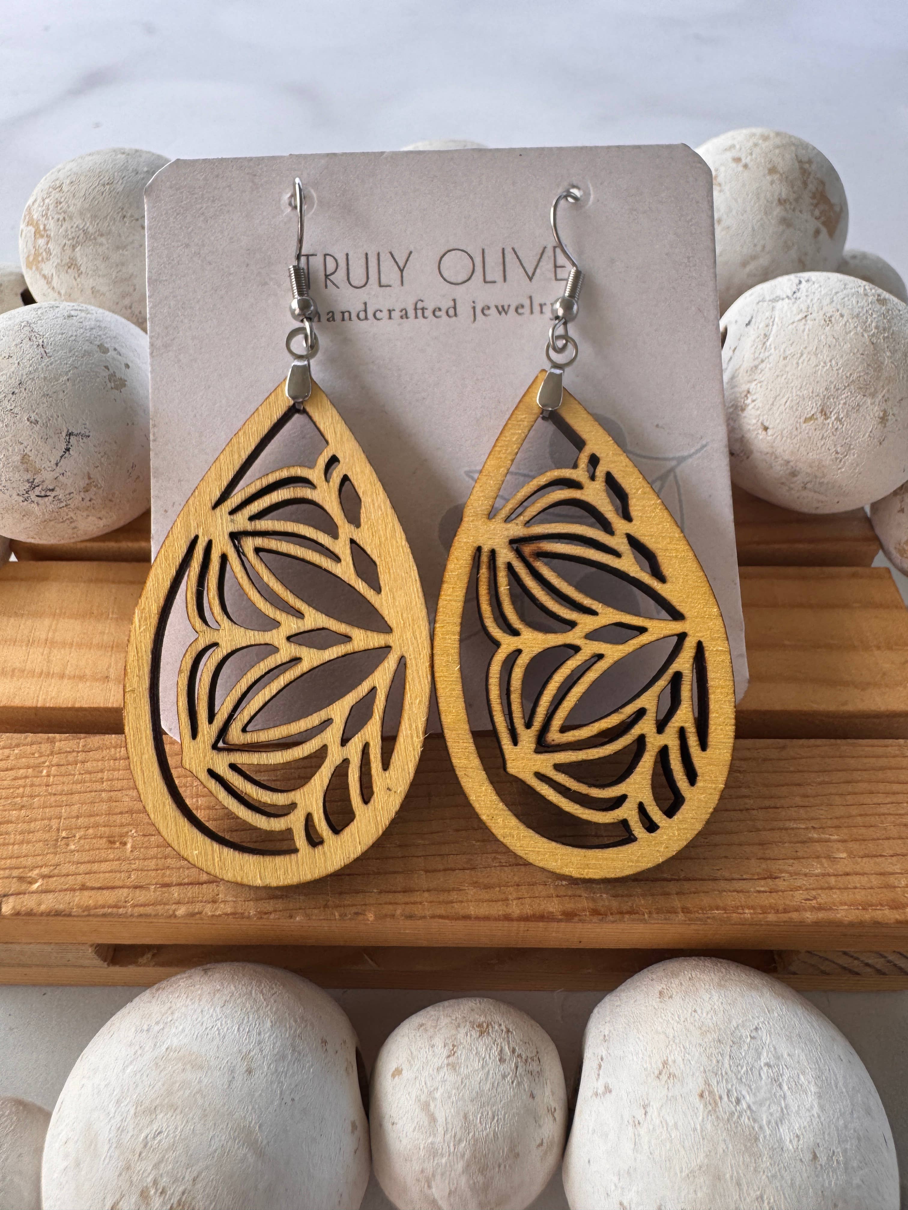 Truly Olive is a uniquely selective boutique, all our products are designed and styled in our warehouse. We offer very unique stylish and comfortable jewelry. Most of our items are made out of very lightweight wood, natural leather, resin and acrylic. I want our customers to wear the earrings and other pieces all day long without tugging and irritation.