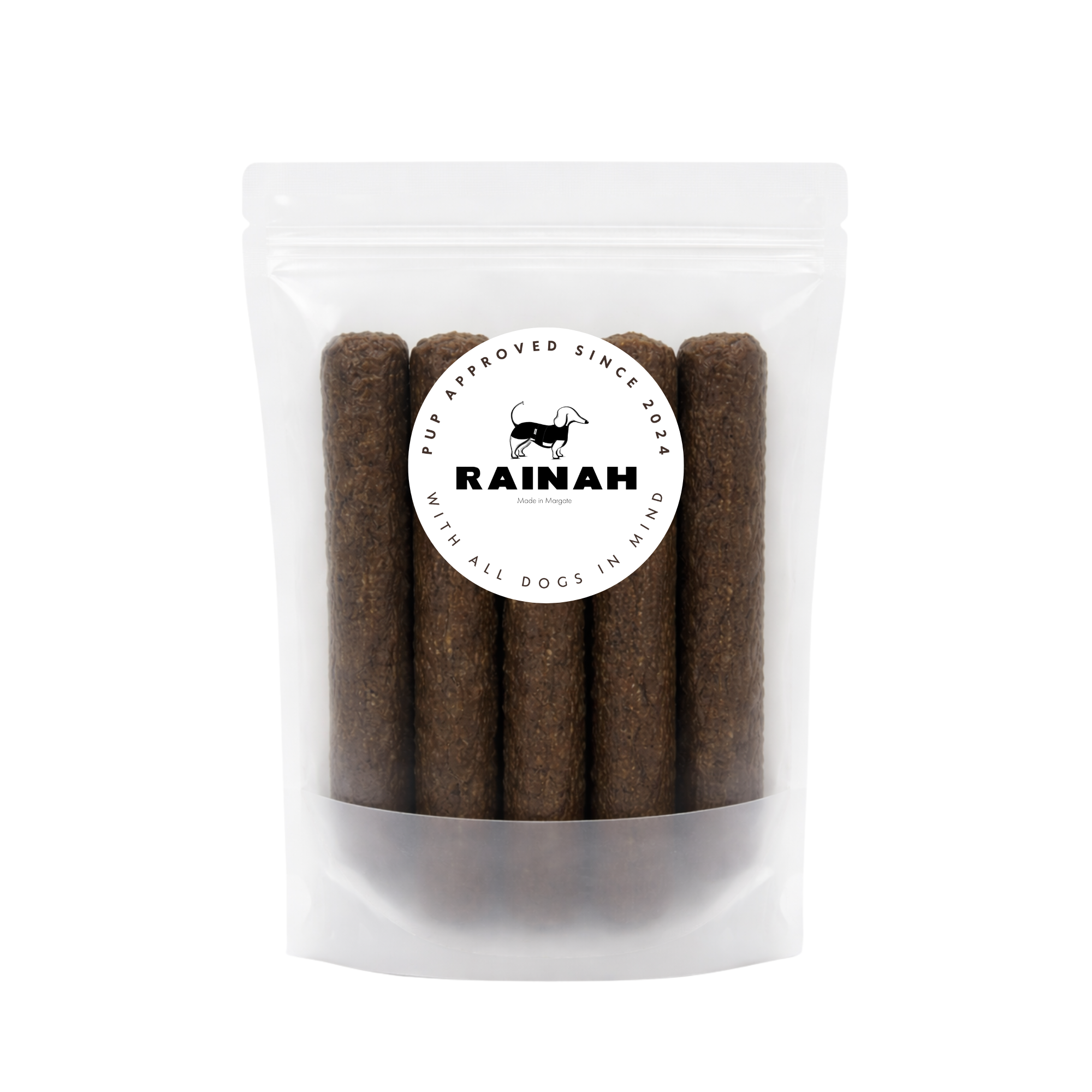 At Rainah, we offer a carefully curated selection of all-natural dog treats, like gourmet sausage slices and crunchy chicken feet. Each product is crafted with high-quality, hypoallergenic ingredients that are highly digestible and rich in essential nutrients. Our goal is to support your dog's overall health while catering to their taste preferences. The name "Rainah" pays homage to my great grandmother, who has been a guiding influence in my life. We believe that every dog deserves the best, and we are committed to providing products that reflect this philosophy.