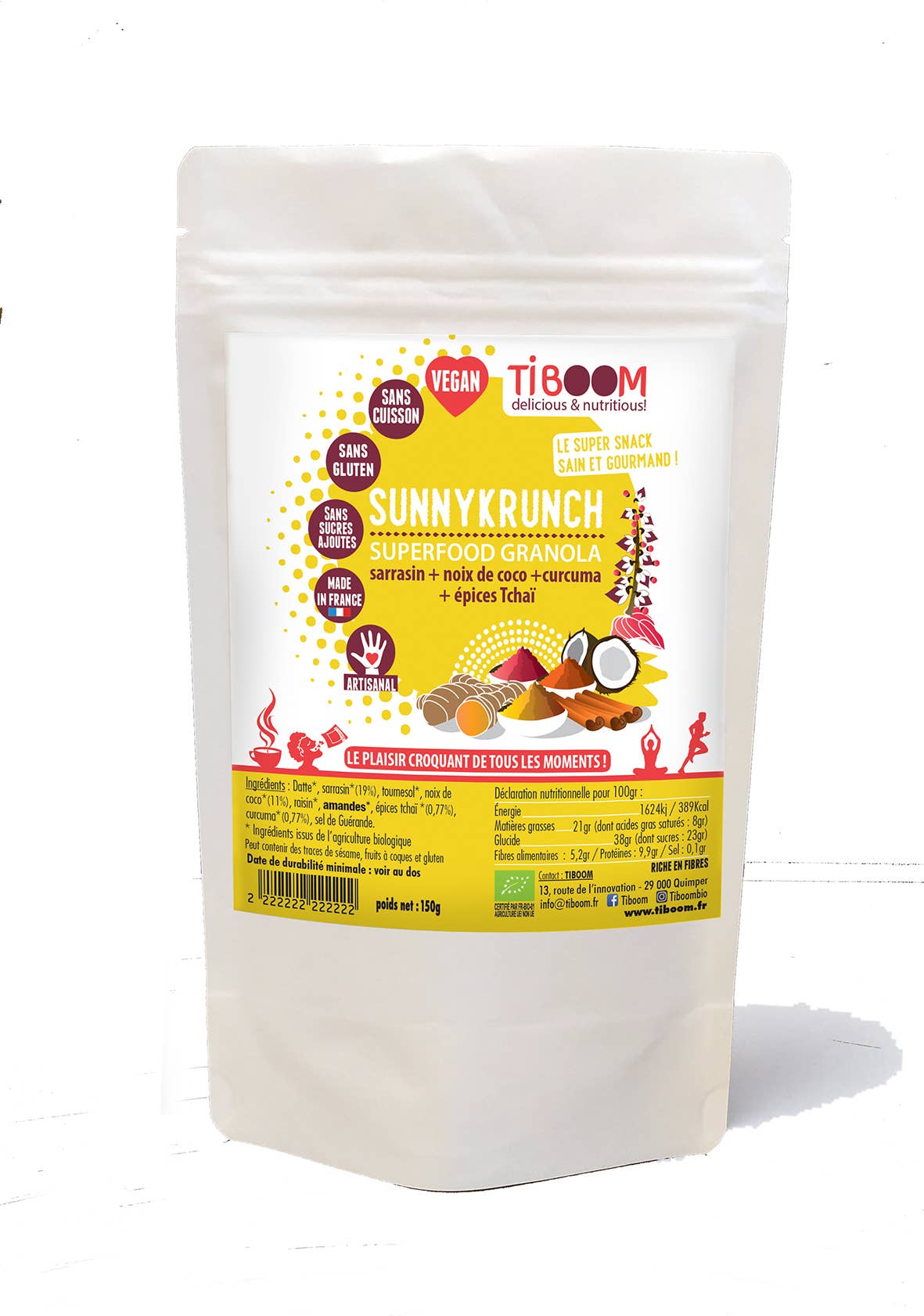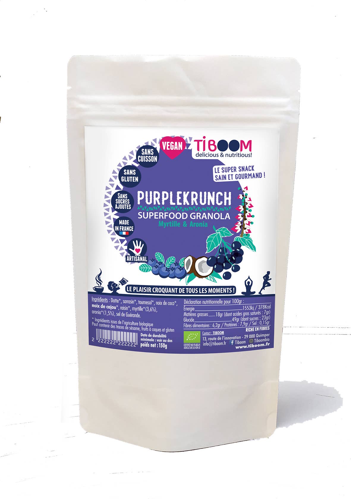 TIBOOM is a craft company for the creation and manufacture of healthy snacks, Organic & 100% vegan, gourmet and very innovative! We offer different ranges of products with original flavors based on local SUPERFOOD, hemp, ashwagandha (1st cultivated in France!) seaweed and elsewhere (maca, guarana, acerola...). Our products are of RAWFOOD quality and our ingredients are carefully selected, guaranteed quality and ethical. Our creations have been made with passion at the forefront of BRITTANY since 2010! Aurélie & John Passionate creators
