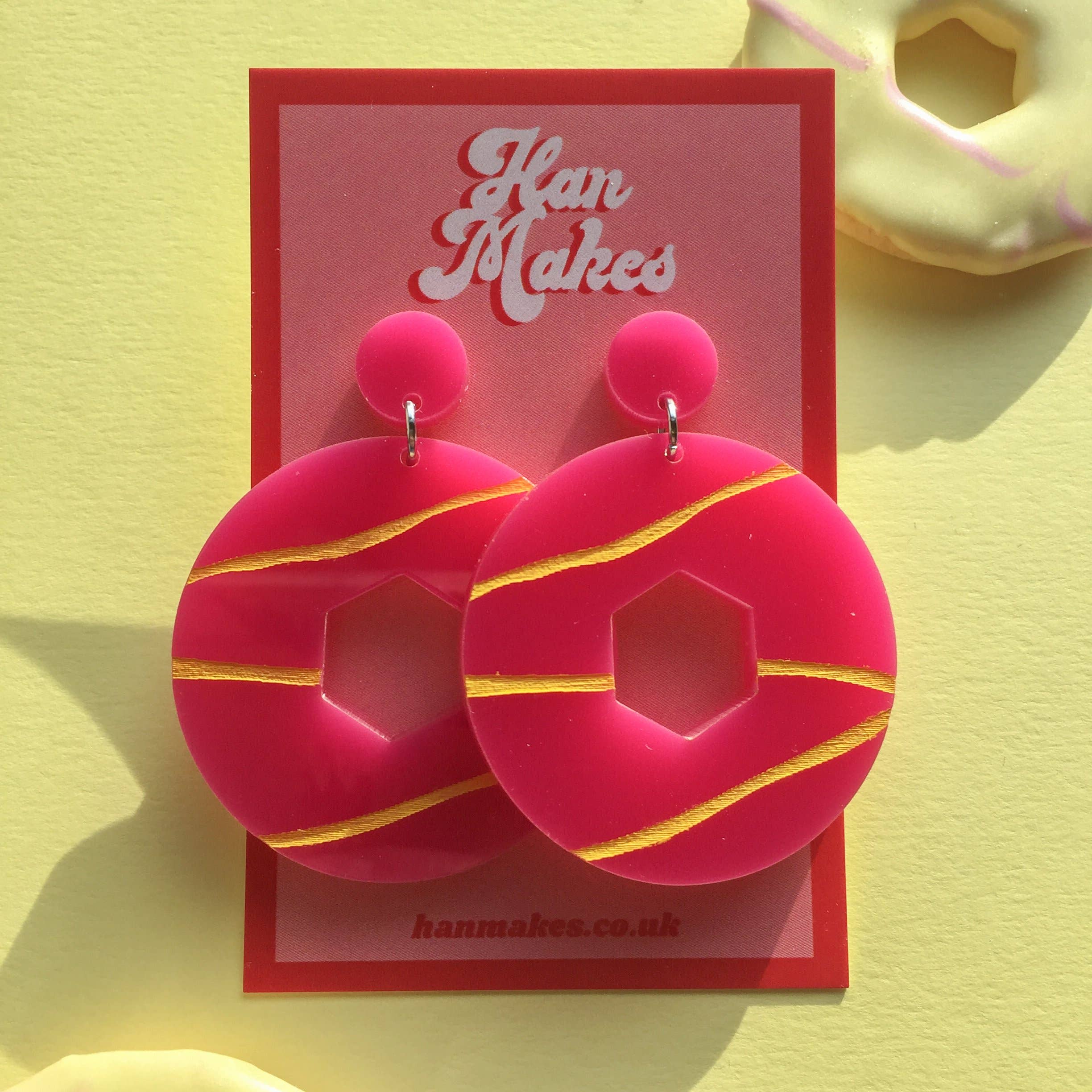 Han Makes is an independent jewellery brand started by Han (Hannah) at the end of her first year of university. Three years on, Han has graduated but Han Makes is still here! And its aim remains to provide high quality, bold laser cut jewellery at reasonable prices. With a focus on bright colours and basic shapes with a little bit of 60s inspiration, each pair of Han Makes earrings is lightweight, eye-catching yet still wearable! Han Makes continues to be run solely by Hannah, and is based in Leeds, UK.