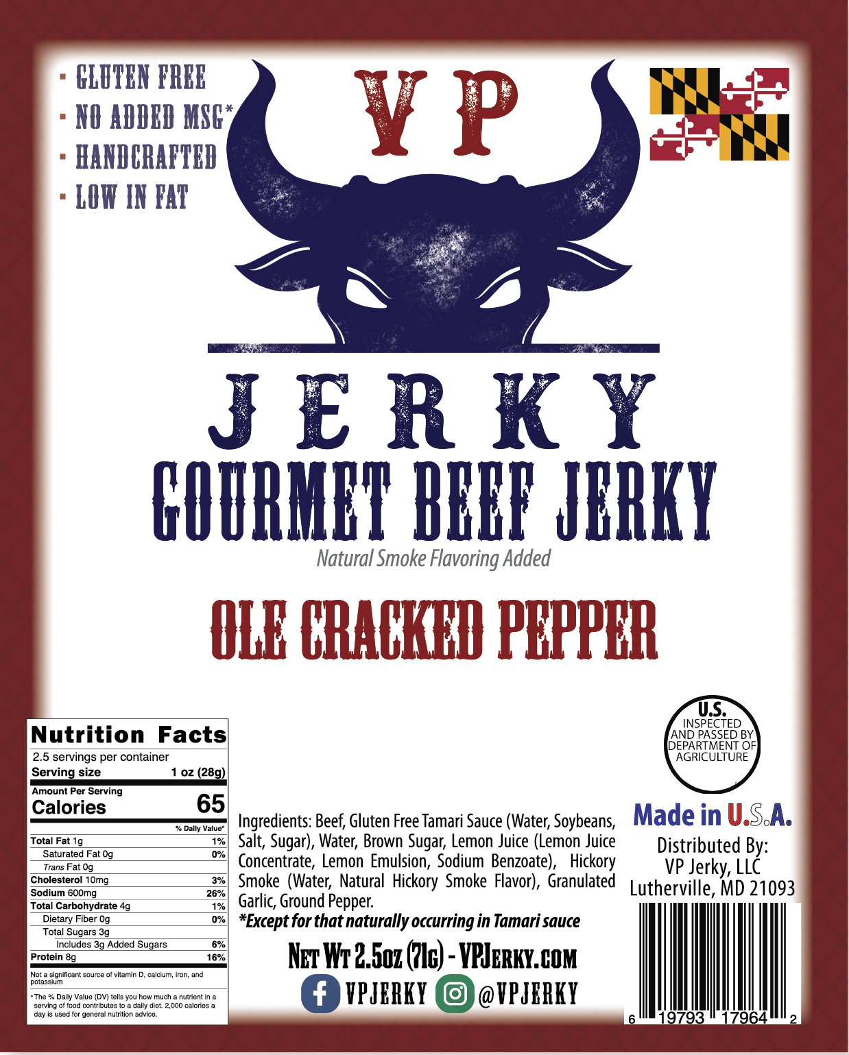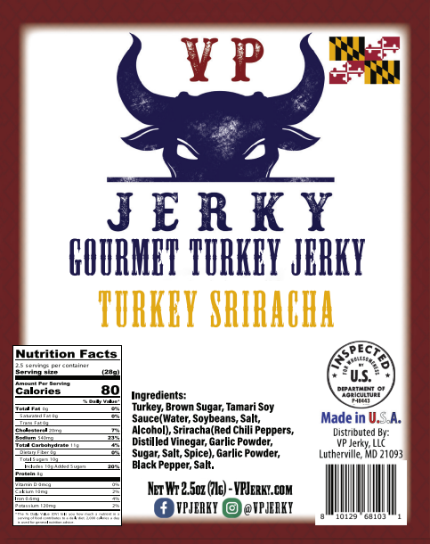 VP Jerky started originally in 2012 when Vince was a Sophomore in Highschool. Growing up he did not like Beef Jerky and never understood how his friends enjoyed it. One of his classmates starting making it and Vince decided to try and make his own. With his mom's help, Vince came up with a recipe that he enjoyed, "Original Teriyaki." He gave away the first batch to his friends and then started selling it in school. Eventually, VP Jerky became a common name or discussion in the school and at the students homes. After Highschool, Vince to Roanoke college to pursue his Business Degree. In 2020 he decided to restart VP Jerky, with the same goal in mind, make beef jerky that is worth spending money on, and is enjoyable. Today there are 4 flavors: Original Teriyaki, Ole Cracked Pepper, Crab Habanero, and Turkey Sriracha.