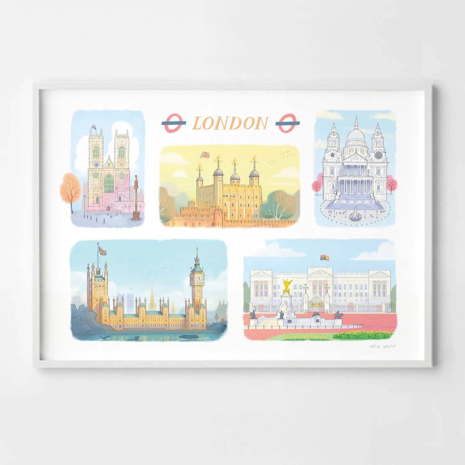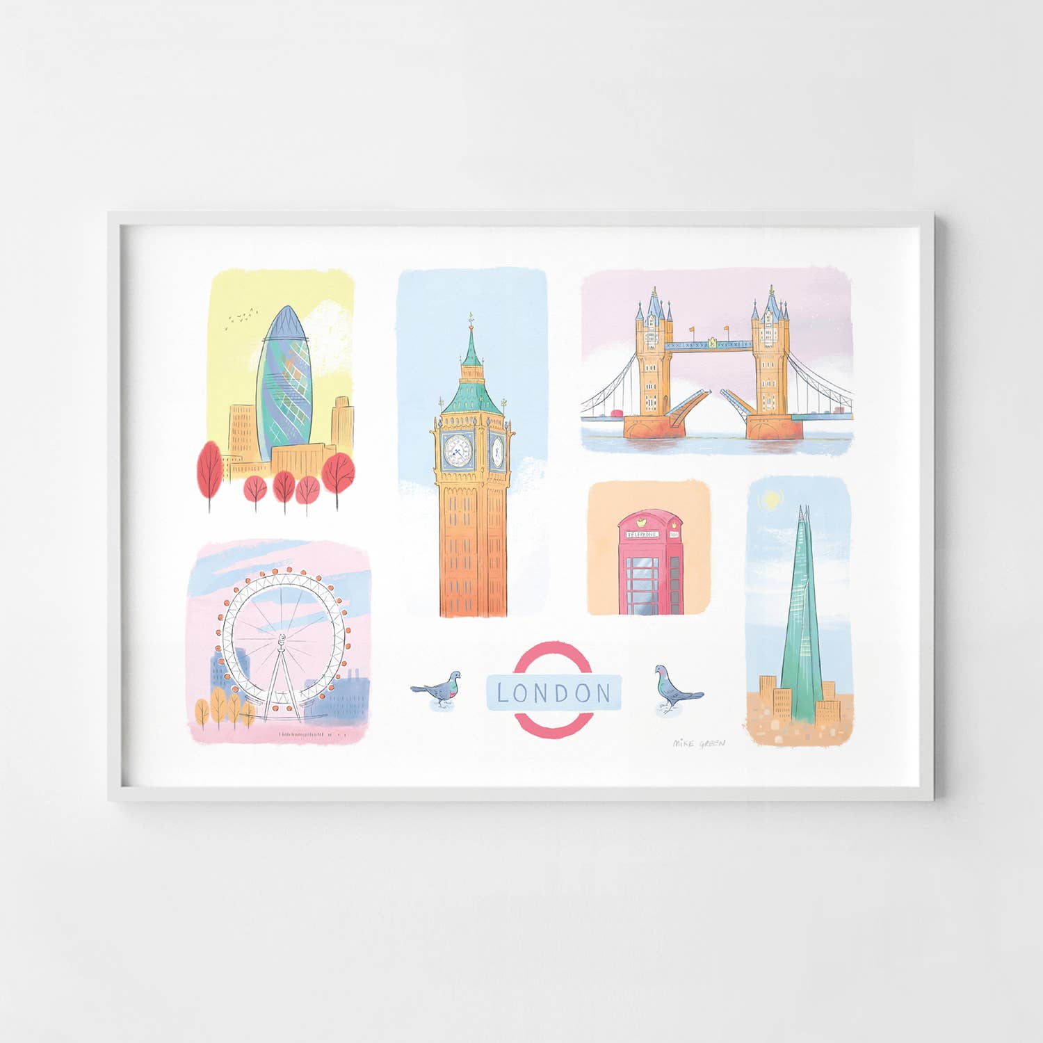 Mike is a London based illustrator with a passion for creating unique pictures of places he visits and filling them with stories. He creates hand drawn illustrations from London and beyond and focuses on finding the beauty in cities, landscapes and landmarks and combines joyfulness and romanticism with a storybook realism to give people uniquely positive reminders of their favourite locations. Mike believes successful art relies on the viewer making a personal connection with the work, drawing on their own experiences, hopes and dreams. He knows he’s succeeded when the artwork makes you smile every time you look 😊