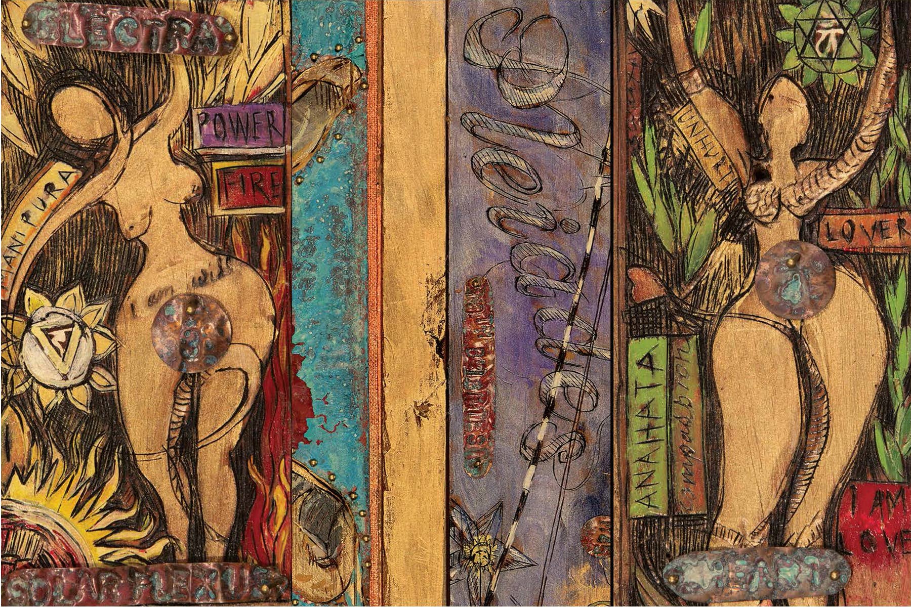 Zenbunnyland is joyous. Steffi Sutton loves the unique elements that fire brings into her line work. Keeping 'the line' at the forefront of her assembled compositions and burned panels, she takes on different surfaces. Her sense of whimsy is ever apparent. Steffi's interests always include the human form, in particular, the female figure. Her themes shift to plant, animal, spiritual + environment, but always seem to return to the human figure; understanding its effect and place on this bright blue planet. “Fire is in my life. I discovered Pyrogravure in the desert and now it’s my passion; a natural progression for my love of line. Burning into wood is tactile, visceral and always perilous. Fire is at the fingertips of our existence, especially in the high desert of California where I live and work. I create images from concepts I adore: mythology, tarot, astrology, tiki, science & always our sacred sky. I keep pushing and pulling them together and apart. Exploring, and always looking for more”. We’ve created a line of unique postcards and folded greeting cards, printed on genuine maple wood from details of some of Steffi’s favorite art panels. Most contain a clever quote relevant to the image. The folded greeting card includes an envelope. All cards are protected by a clear PVC sleeve, allowing your customers to handle without concern. Zenbunnyland is Steffi Sutton and her soulmate Paul, working in tandem; a partnership forged in true collaboration & collective creation.