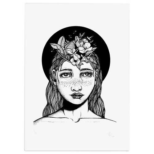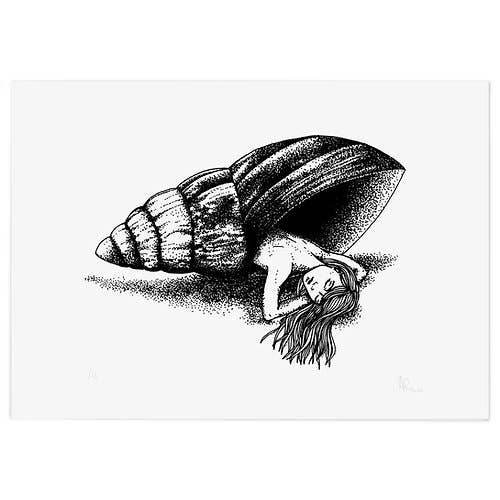 amesea was created in 2018 by designer and illustrator Amy Clarke. She creates detailed drawings using Rotring pen and fine liner in a distinctive monochrome style, often utilising dot work to convey details. Hand drawing and an analogue approach to illustration are at the core of the brand. Amy produces limited edition screen prints of these works by hand. Drawing on personal experience, she constructs visual metaphors to explore themes of mental health and self-care. Some pieces were created to work through difficult emotions, whereas others serve as reminders to be kind to ourselves in times of need.