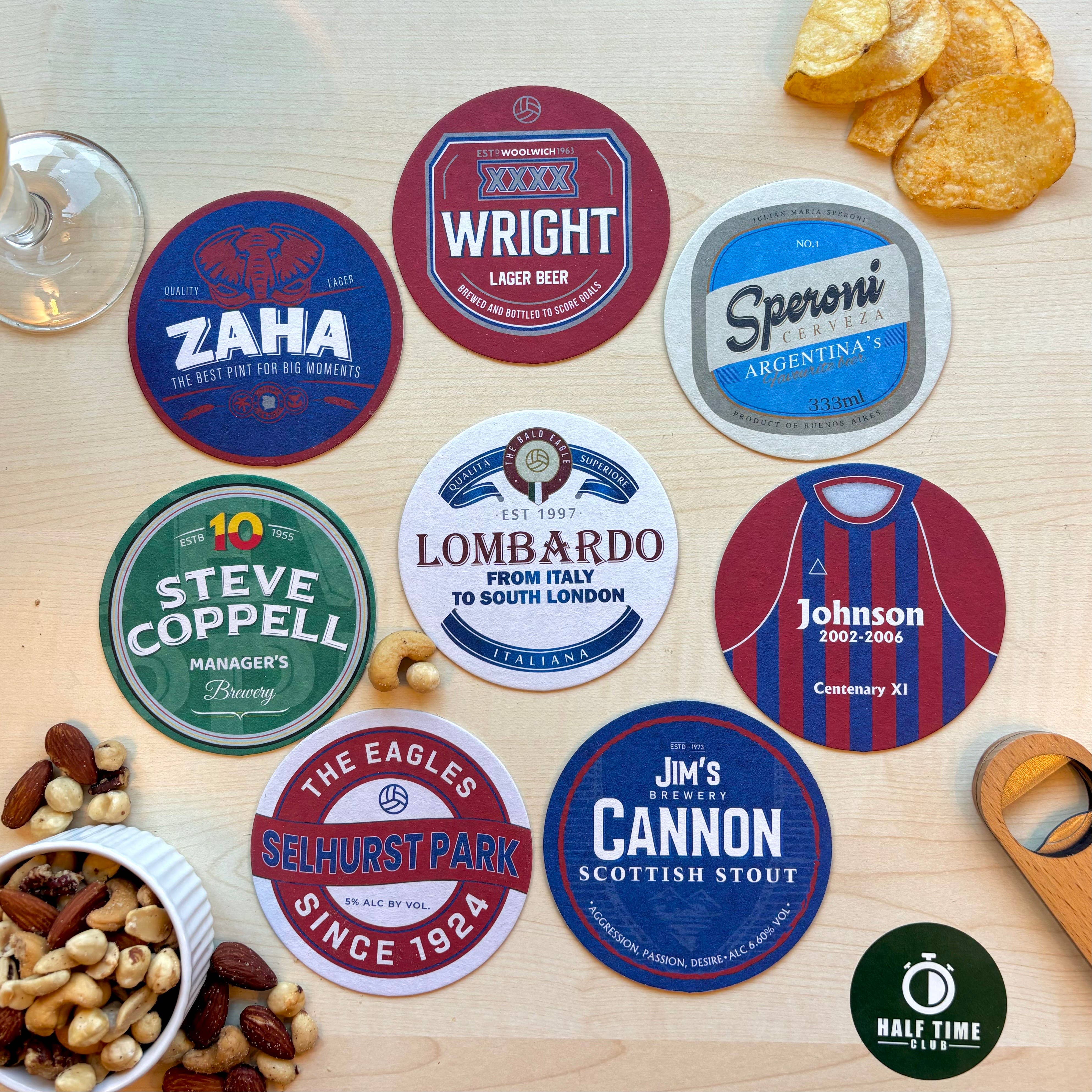 Half Time Club was born from a simple love for football and a great pint. We wanted to bring the passion of the game into every home, so we created high-quality beer mats featuring the biggest clubs. Whether you're reliving matchday memories or finding the perfect gift for a fellow fan, our beer mats add the perfect finishing touch to any football lover’s space. Designed for the fans, by the fans—because the game doesn’t stop at the final whistle. ⚽🍻