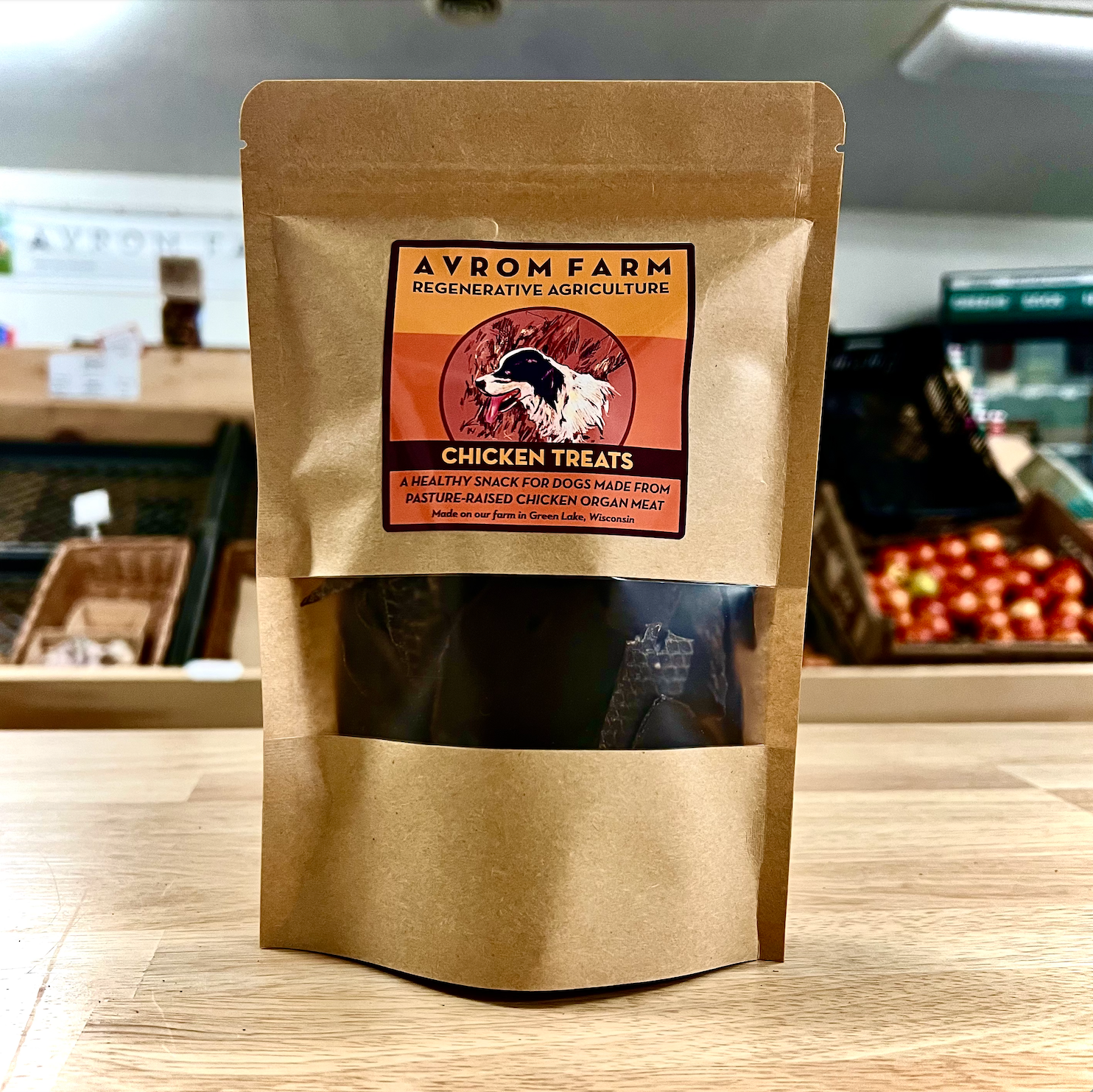 We are a pasture based livestock and vegetable farm in Central Wisconsin, committed to building a sustainable food production system. On our farm we work with livestock guardian dogs to protect our animals from predators on the open pasture. From the beginning we have used organ meats as a nutritional supplement and treat to reward good behavior. These treats contain a nutritious mix of hearts, kidneys, and livers that are simply dehydrated for preservation. They contain no additives or fillers and come from beef raised sustainably on pasture.