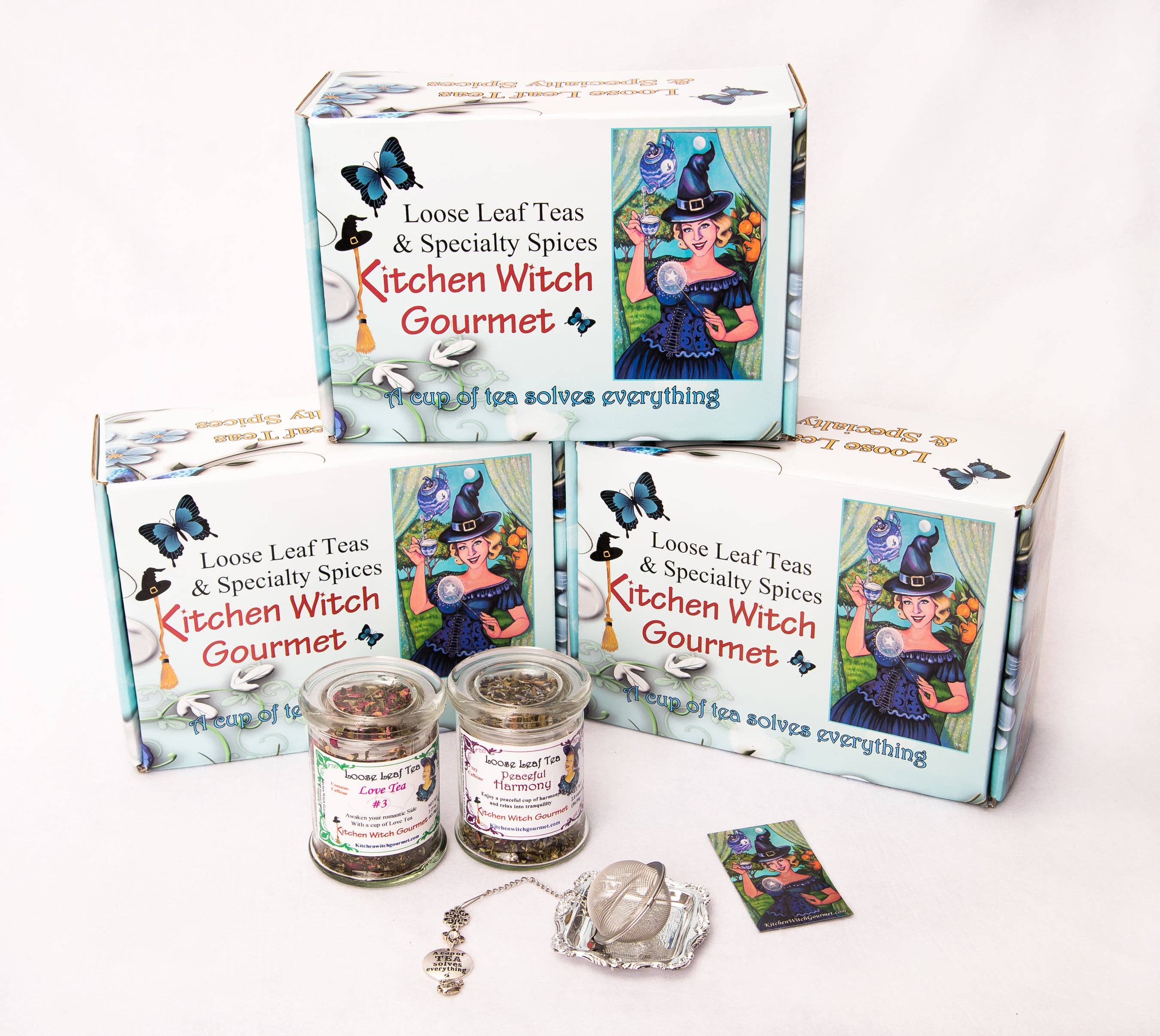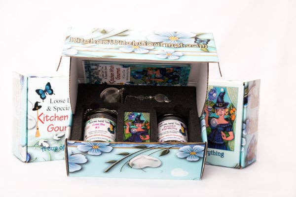 Kitchen Witch Gourmet loose leaf was established in 2010 with the purpose of adding love and intent into every cup of tea. We believe by serving a cup of Abundance of Happiness this will elevate your mood with joy. By giving the gift of Peaceful Harmony tea you are sharing a relaxing destination that starts in your cup. Our teas are sourced from small farms when possible and blended with the highest intentions of integrity, gratitude, love, and whimsical magic. Our tea collection is guaranteed to bring smiles to those buy them, to those who receive them, as well as to those who give them. But most of all our teas make a fantastic addition of prosperity to your store.