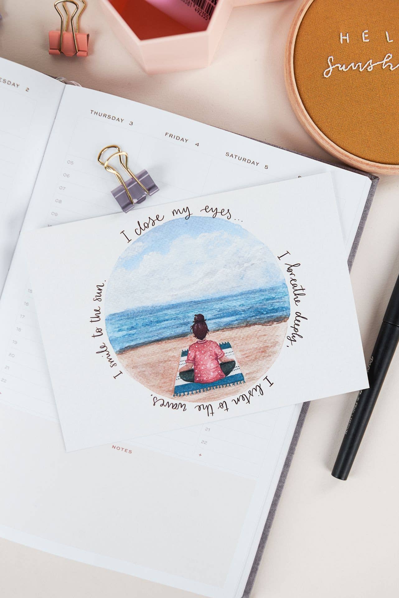 Sunshine for Breakfast is a Bristol based illustration business, on a mission to make the world more a positive place with positive words, mindfulness and nature. • Where it all began • Sunshine for Breakfast launched in 2016, with a first range of illustrated greetings cards. The brand has grown to include luxury gold foil cards, art prints, postcards and beautiful gifts. • Mental health and positive energy • The idea for Sunshine for Breakfast began after I was struggling with mental health. I found my medicine in making others smile, by creating hand painted greetings cards to send to friends and family as a little surprise snail mail. I found through brightening someone’s day, sending a positive message and a hug in the post, brought me just as much happiness to send as friends did receiving them. I wanted to channel this positive energy and offer a little Sunshine for Breakfast whilst people opened their post in the mornings. • Nature, yoga and mindfulness • I paint my nature illustrations with watercolour and gouache, I love to create characters and emotion in the animals and scenes that I paint. Whether it’s an adorable elephant cuddling, or a peaceful beach scene, I love to get lost in the moment and really bring a sense of connection with my creations. Designs often feature my own hand lettering. My words are always carefully selected, to encourage a moment of pause, an extra slow and deep breath, or a moment of calm. I hope you enjoy the Sunshine! Jodie☀️
