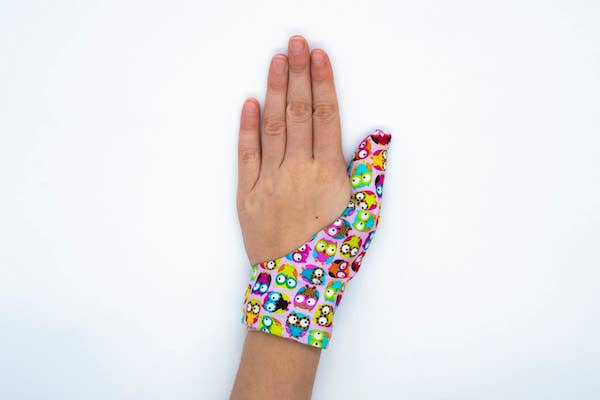Approved by the Oral Health Foundation, Thumbsie®, multi-award winning and UK market leaders, design and manufacture fabric, fun & comfy thumb guards to stop children thumb sucking in a fun and positive way. Suited to children 3-12 yrs who want to stop sucking but need help! Great fabrics available. Multi-award winning Thumbsie® was created from a real need when Jo Bates’s, founder Thumbsie Ltd, third daughter Isabel needed help to stop thumb sucking. Thumb sucking is one of an infant’s natural reflexes, it makes them feel secure and happy, some children also do it when they are bored. However, research has shown that there can be a number of problems associated with thumb sucking in children. If the act of digit sucking is prolonged and aggressive, this may cause issues with the growth of the mouth and the alignment of child’s teeth. It also can cause changes in the roof of the mouth (palate)which and can cause speech problems. Fits Like a Glove: The thumb guard is worn like a glove, it fits over the thumb and is secured with Velcro around the wrist, so is easily adjustable. The guard will fit either thumb and will not limit the child’s ability to play or use their hands. Approved by professionals: We are delighted that Thumbsie® has been ‘Approved’ through the Oral Health Foundation Accreditation Scheme and that they recognise Thumbsie® as a useful aid in oral health.