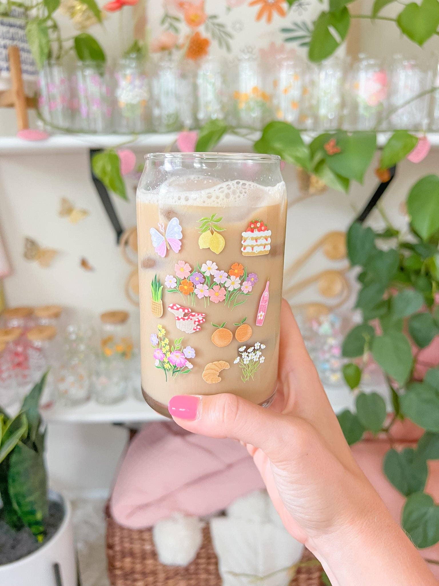 Designs are hand drawn by myself and professionally printed and dishwasher safe. These are NOT vinyl decals and no SVGs are used. What started as a side project for myself to stay creative has become so much more. I was sipping an iced coffee in one of my favorite Charleston coffee shops and that's when I saw the most perfect shaped glassware. I knew they would look amazing with florals and plants on them so I made my vision come to life. I have a strong passion for the hospitality industry and I believe that has helped create my love for providing amazing curated glassware products for all of you. I love any sweet messages and to see how happy you are when you get your glass in the mail. I'm surrounded by inspiration where I live in sunny Charleston, SC and I have an amazing support system that consists of my fiancé, Ian, who keeps me sane as well as my part time coworker, Pinto, the most lovable mini dachshund. We love pretty glassware, plants and all the florals! I've designed these collections by using inspiration from all of my favorite house plants and pinterest worthy florals. I wanted to keep the designs minimal and aesthetically pleasing. I imagine the glassware to be perfect for open shelves in a kitchen, being sipped from on a porch or even propagating your plants. I believe in creating a beautiful life for yourself and it can be as simple as enjoying your iced coffee from a pretty glass.