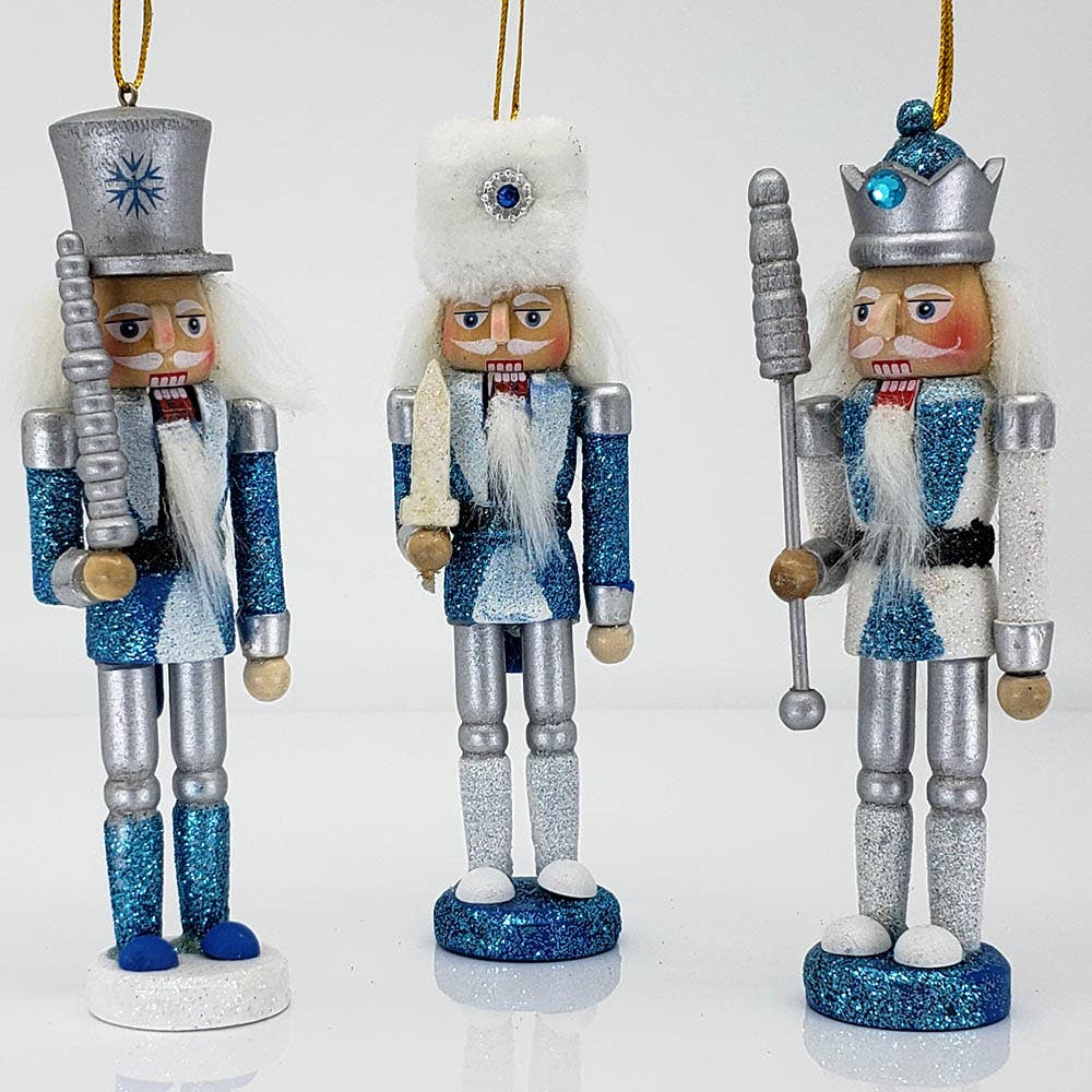 ORN014: 6 inch Black and Gold Nutcracker Ornament Set - Set of 3 Ornaments These 6 inch tall Nutcracker ornaments are dark and classy, with gold metallic accents and each with it's very own personality. 6 inch tall Black and Gold nutcracker ornament set - comes with 3 ornaments Black and Metallic Gold. Fun and unique custom hats to add to their charm. Perfect choice for any Christmas decorating that needs to be done.