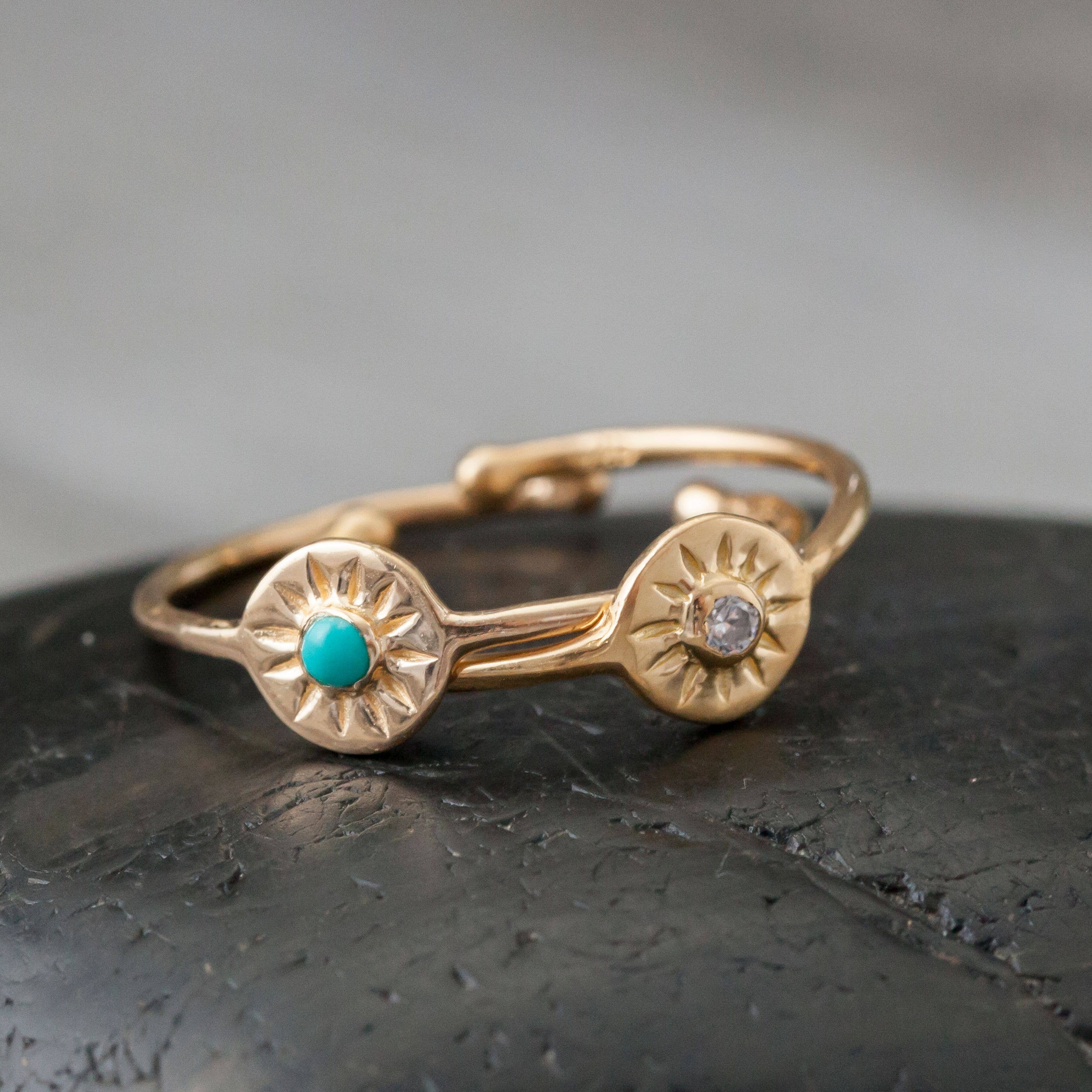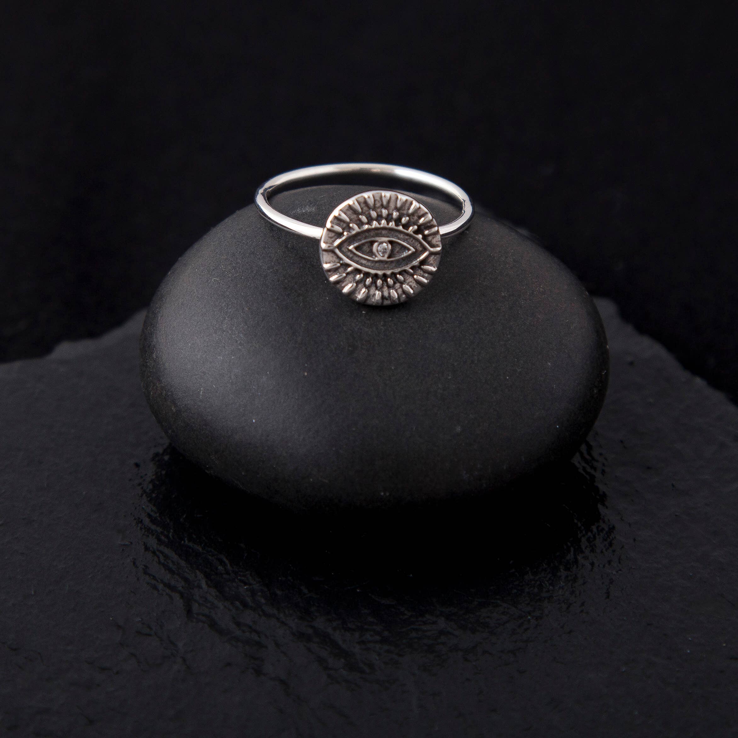 2 micron 22k gold plated evil eye ring. Delicate sterling silver and 22k gold plated designs. Some designs available in rhodium and gold (RD-G).