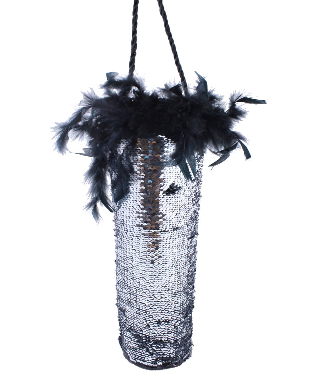 Corset double wine tote is made of bright red metallic lip print material and topped with matching red fur. Holds 2 bottles of most 750ml wine and spirit bottles. Chain handles, insulated tote. Weight: 0.73lb.