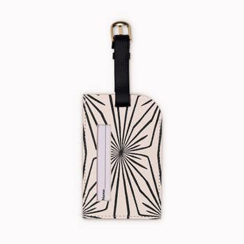 Luggage tag with handmade fabric design. Colors may vary.