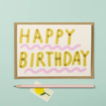 Holy cow, you're another year older!! Send someone this handmade birthday card to celebrate their big day. DETAILS: * A2 size (4.25 x 5.5 inches) folded card professionally printed in Nashville, TN * Printed on 100 lb. white, semi recycled card stock * Comes with matching A2 kraft grocery bag envelope * Carefully packaged in protective cellophane sleeve * Blank inside for your own personal message * Product details and brand logo on back of card * Designed by Ava Wolf