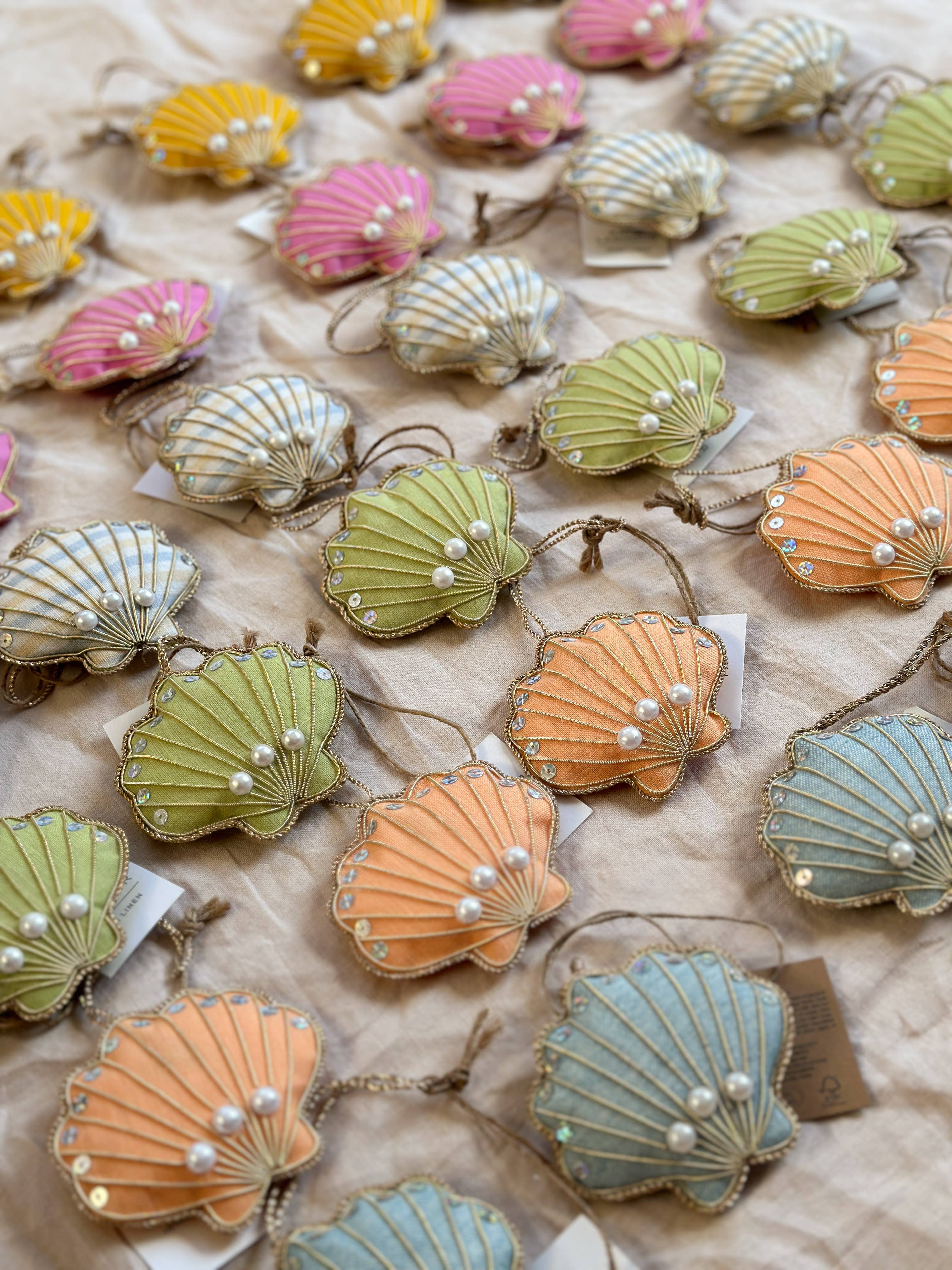 (12pcs) Assorted Summer Brights Irish Linen Handmade Shells