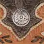 Zip-Top Shoulder Bag with adjustable shoulder strap. Smooth charcoal brown vegetable tanned genuine leather is hand tooled with intricate feather designs on front and back accented with turquoise color. Decorated with hand tooled border designs and a decorative concho. Sides feature leather lacing detail with long flowing tassels, and an intricate metal feather concho on one of the sides to complete the look. Back of the bag has a zipper pocket. Inside has a zippered pocket and open pouches. Each handbag includes a protective storage bag. Every American West product is hand tooled from hand dyed 100% leather cowhide. This adds to the beauty and individual variations to make your American West product truly unique. Zipper closure. 11.5 x 8 x 3.5" Adjustable Shoulder Strap: 11-13" drop
