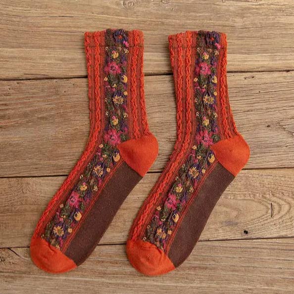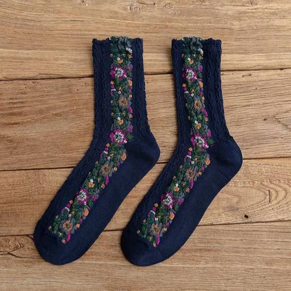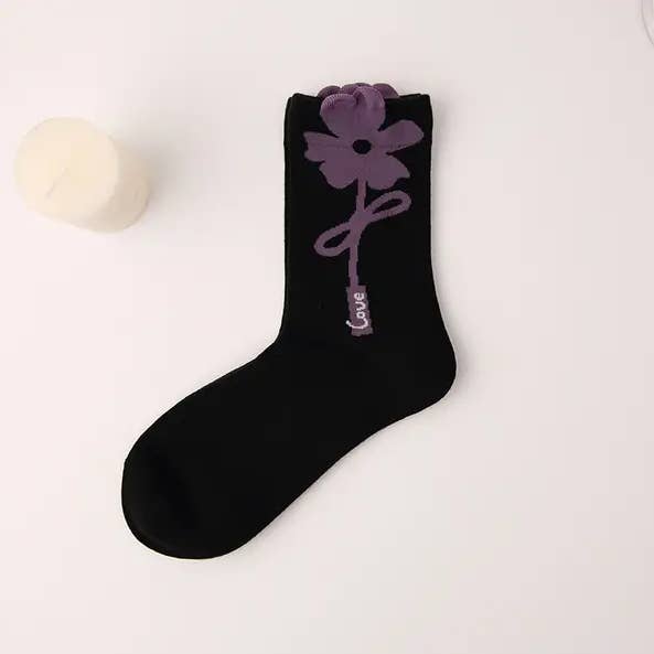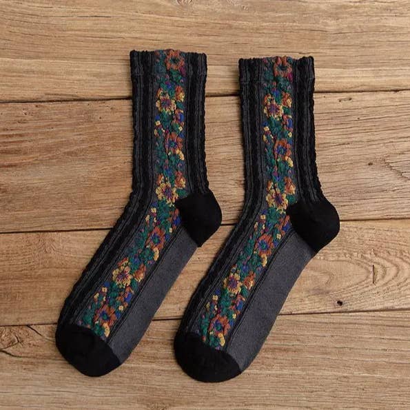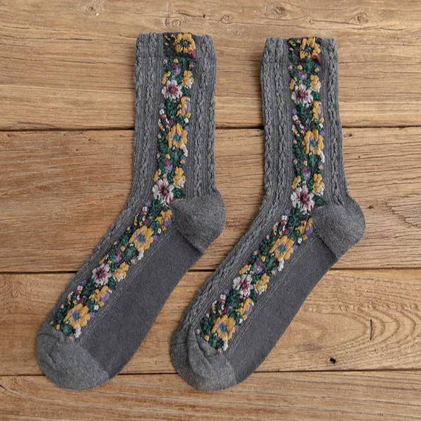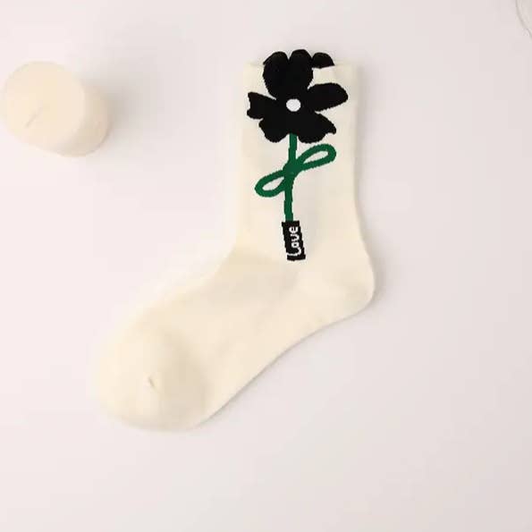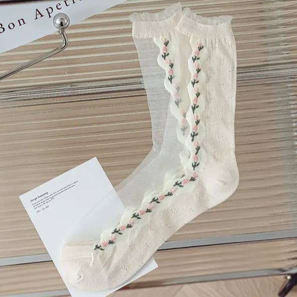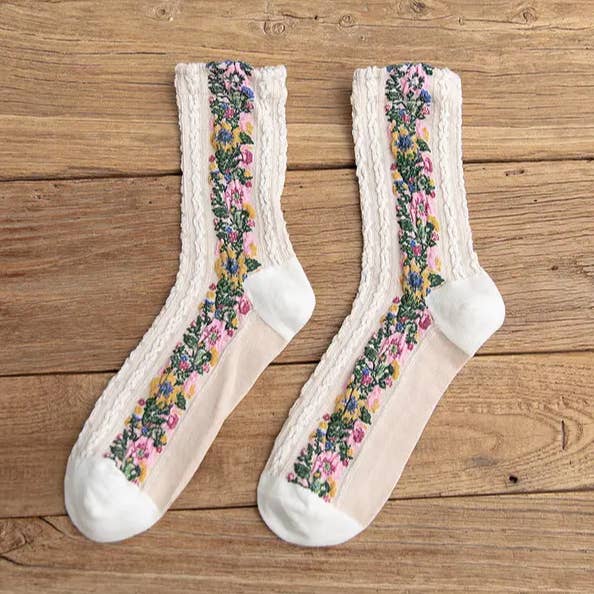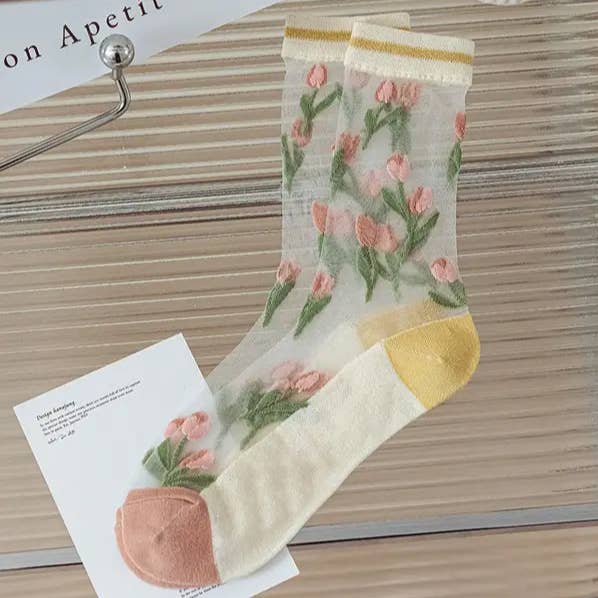 Tulip Floral Patterned Crew Socks