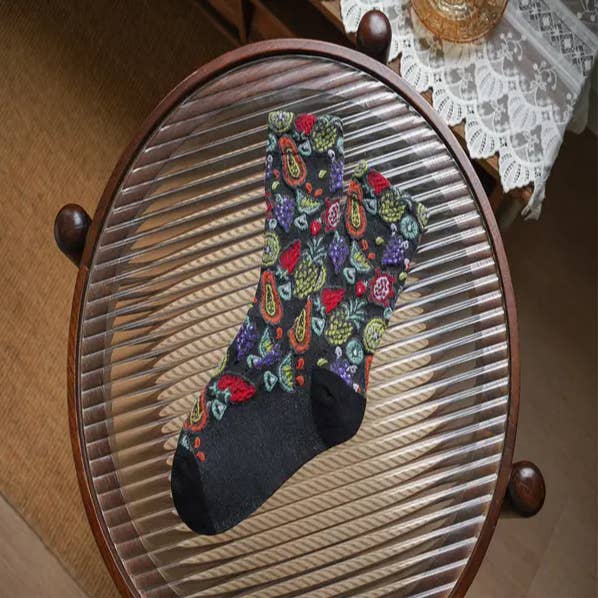 Fabric name: polyester cotton Function: sweat absorption, deodorization, anti-friction Pattern: floral, geometric pattern, plant flowers Applicable gender: female Main fabric composition: polyester fiber Tube height: medium tube Number of needles: 168N Suitable season: winter, spring, autumn Product category: ordinary casual socks Size: one size fits all Weaving method: single needle