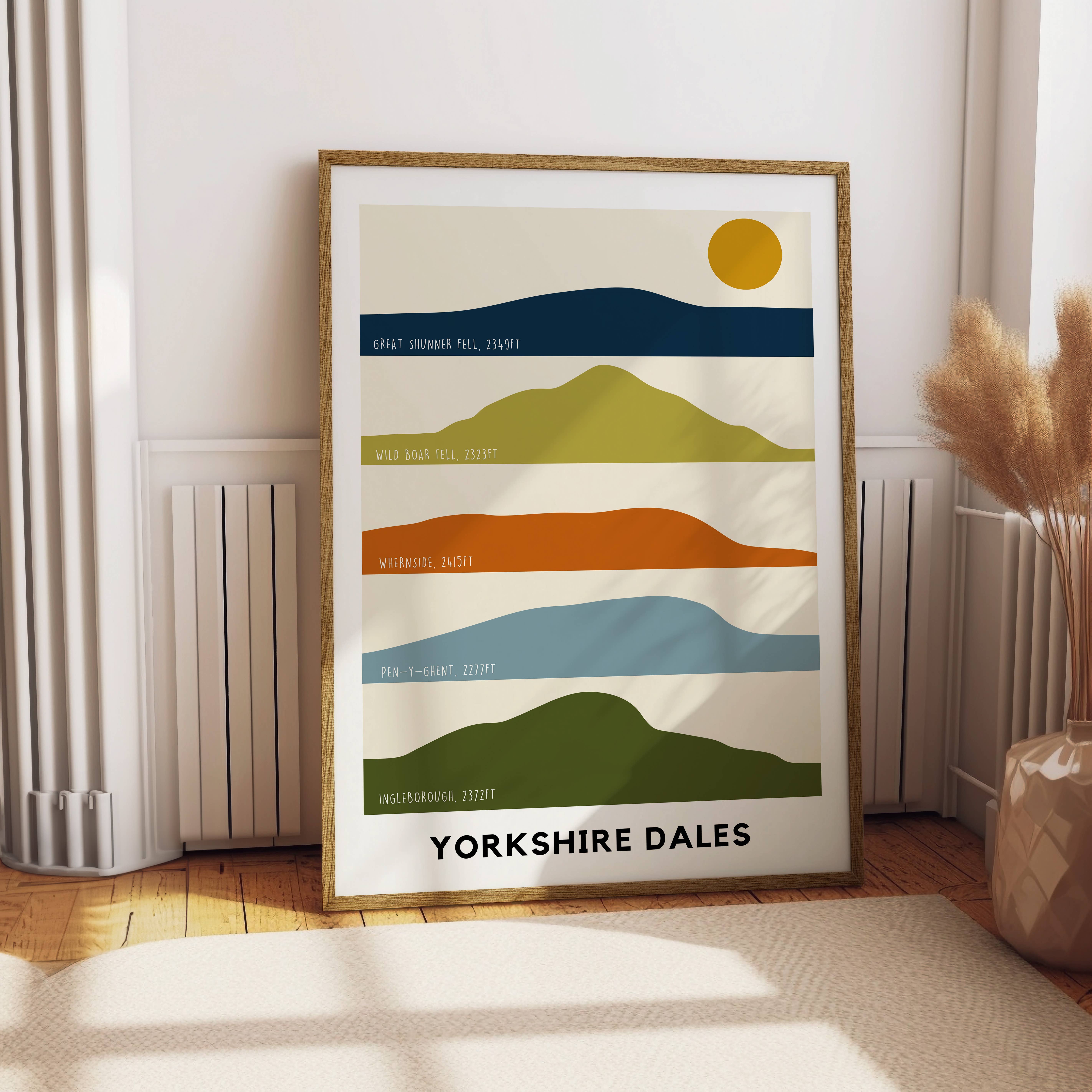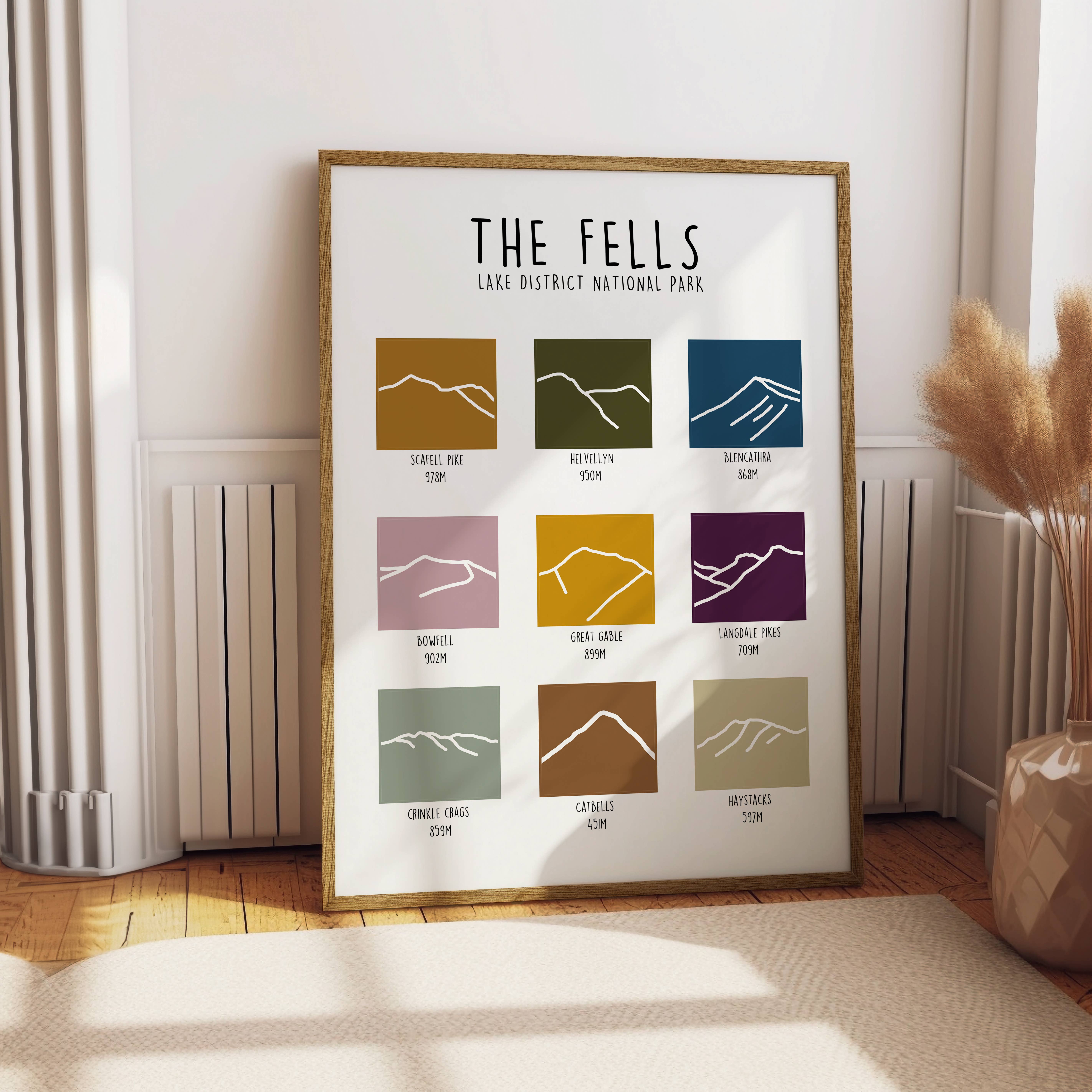 Minimalist silhouette art by Jude River Design. Featuring 5 fells from the Lake District National Park. The perfect print for anyone who loves the lakes. Printed on beautiful 316gsm fine art paper, and available in A5, A4 or A3. Comes complete with a hard back Kraft board, cellophane wrap and branded sticker to the front.