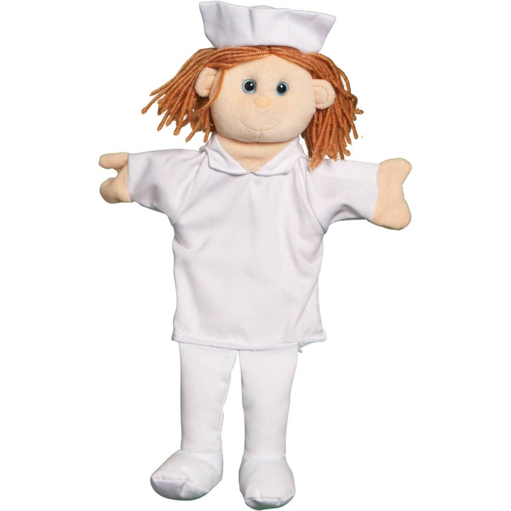 This 28” Doctor puppet can be a Mad scientist?, Nice doctor?, Wise professor? Grandpa?, You decide! This extremely funny doctor puppet is very versatile. His lab coat has his name, "Dr. Moody", printed on it. Remove his lab coat and he's a very well dressed grandpa. Underneath he is wearing a checkered shirt and gray slacks. His realistic glasses, balding hairline, and mustache, make him one silly puppet! (clothing may vary slightly due to fabric availability). His clothes are removable and he wears child size 2T clothing. He has an easy to move mouth and comes with a metal arm rod that attaches to either of the puppet’s hands for movement. Bring your puppet to life by making it wave, blow kisses, fix their hair, and so on. Let your child’s imagination soar! Our 28" puppets are highly recommended for both beginners and experienced puppeteers. They are perfect for puppet ministries, school performances, theater, therapy, ventriloquism, and of course imaginary play at home!