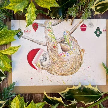 Sloth | Eco Friendly Christmas Card Colourful Cute Blank