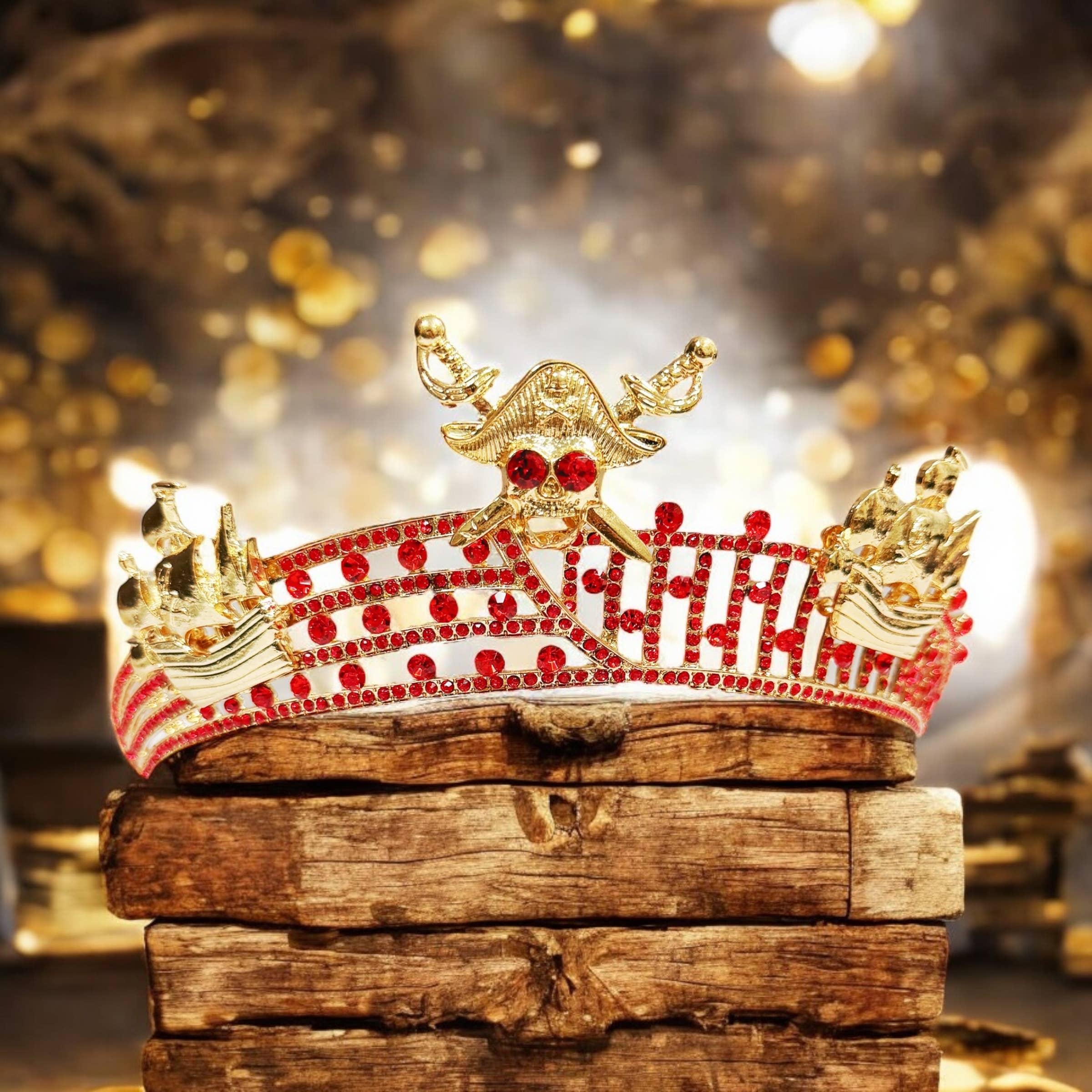 Material: Sturdy alloy, gemstones, shiny rhinestones and crystal. Color: Red Crystal, rhinestones and Black-plated crown. Occasion: Halloween party, Day of Dead, Holiday Decor, hair accessory, Halloween costume, Masquerade party, Festivals, Carnival themed party, Formal event, trick-or-treat, cosplay, theatrical plays, fashion show, stage productions, photography prop, any Special gothic Event