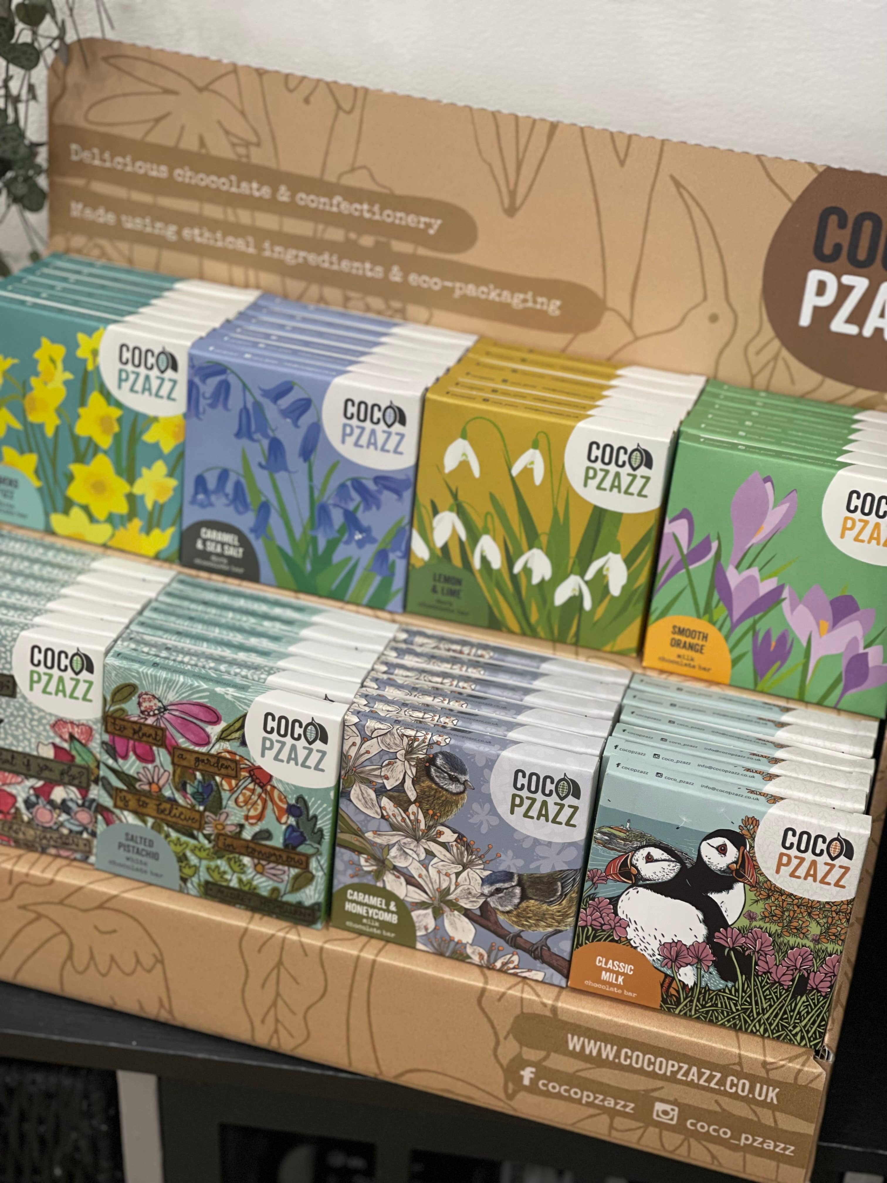 The quality of their chocolate is outstanding… the customer feedback has been 100% positive and it’s a great addition to our shop. We also chose Coco Pzazz initially because they are an artisan British company, female owned and with a strong commitment to sustainability and ethical values. It helps that their packaging fits perfectly with our flowers! Excited to receive our new Truffles!