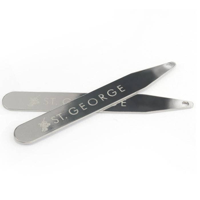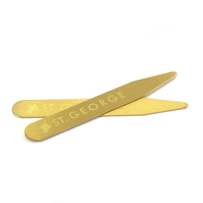 Our brushed brass collar stiffeners are of excellent quality and an essential accessory for any dapper gentleman. Sold in pairs and packed on a card.